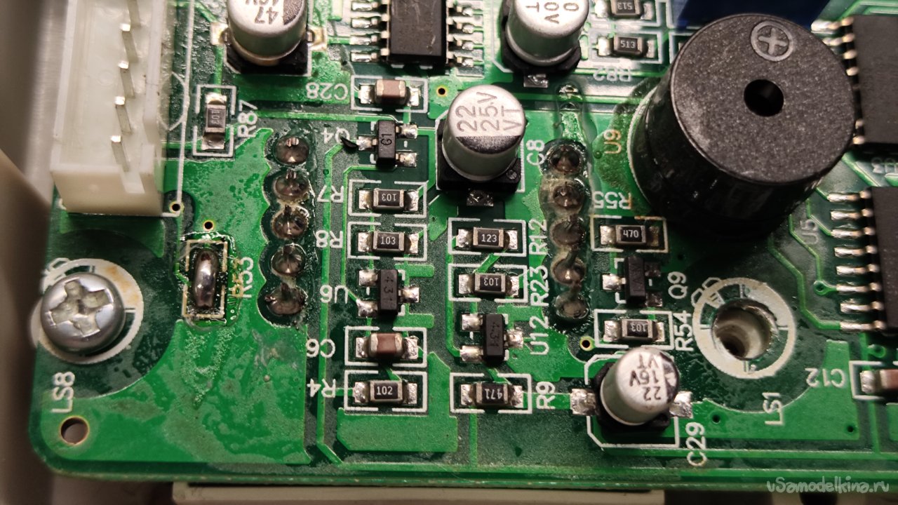 Пайка индикатора не отмыта от флюса.