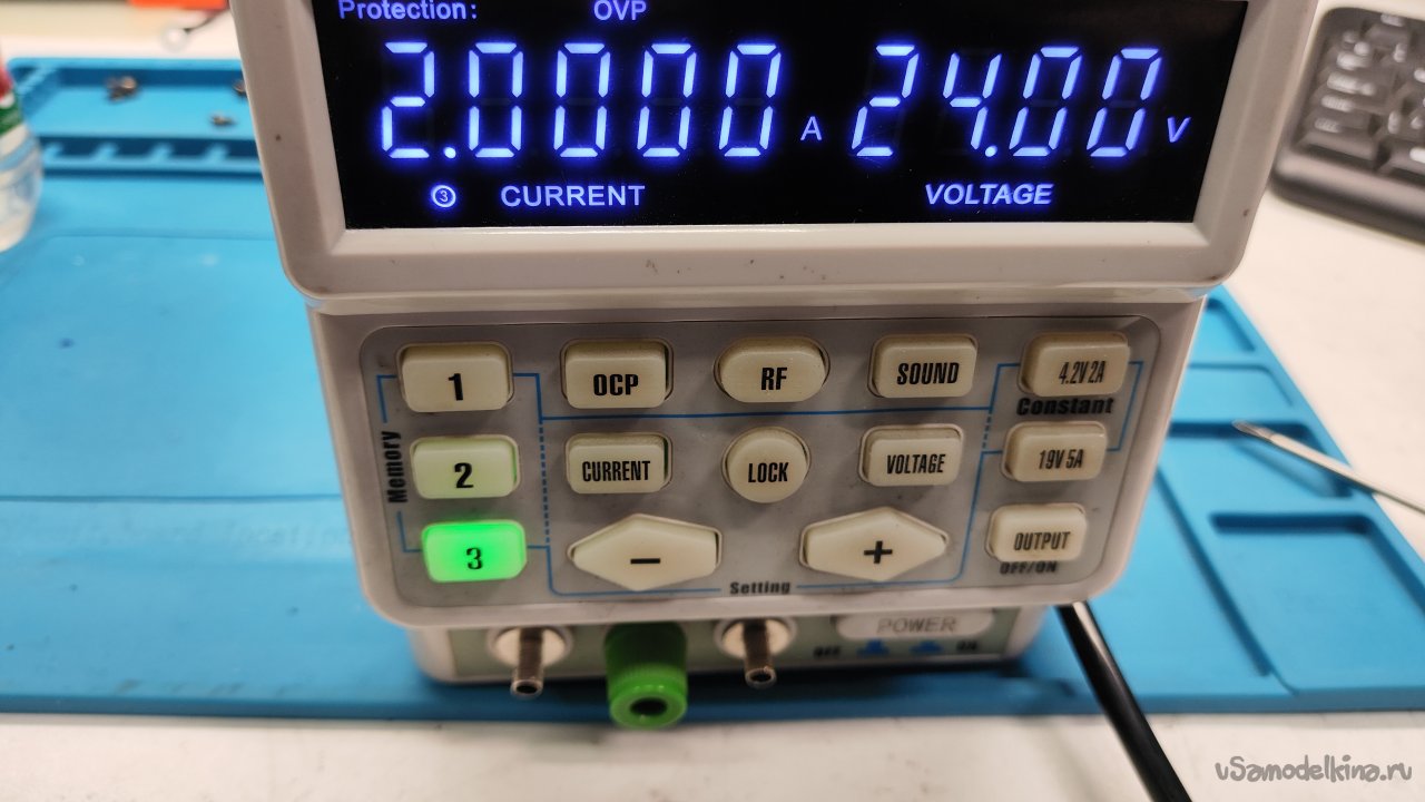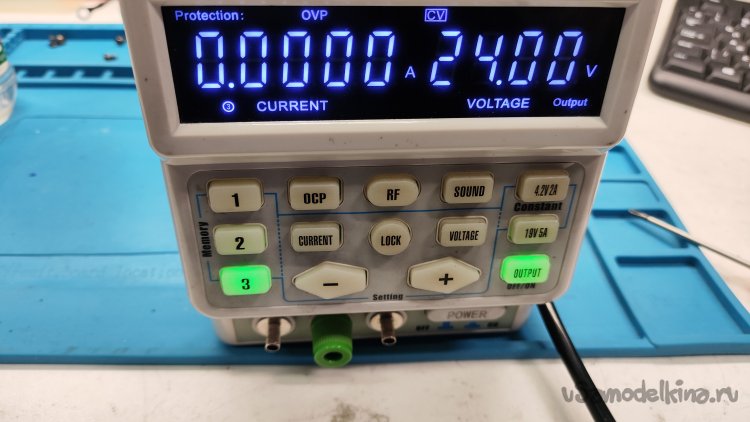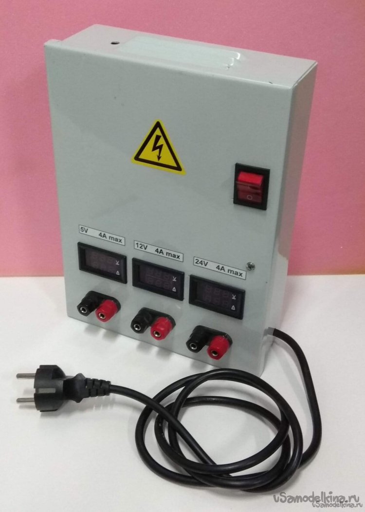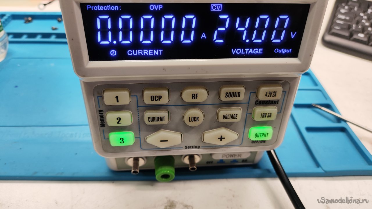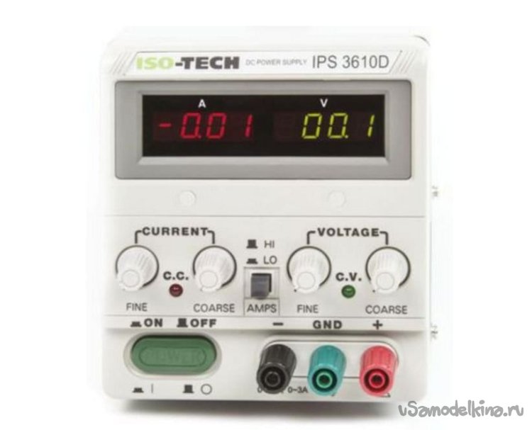 Очень быстро переменные резисторы стали сильно шуметь, настроить точно значения выходного напряжения и тока стало невозможно. Купили новый источник, а старый положили на полку, может, кто захочет починить, заменить резисторы. Нового блока с лихвой хватает, он удобный в эксплуатации, плюс есть самодельный источник на три фиксированных напряжения 5, 12 и 24 В, о котором я уже рассказывал: