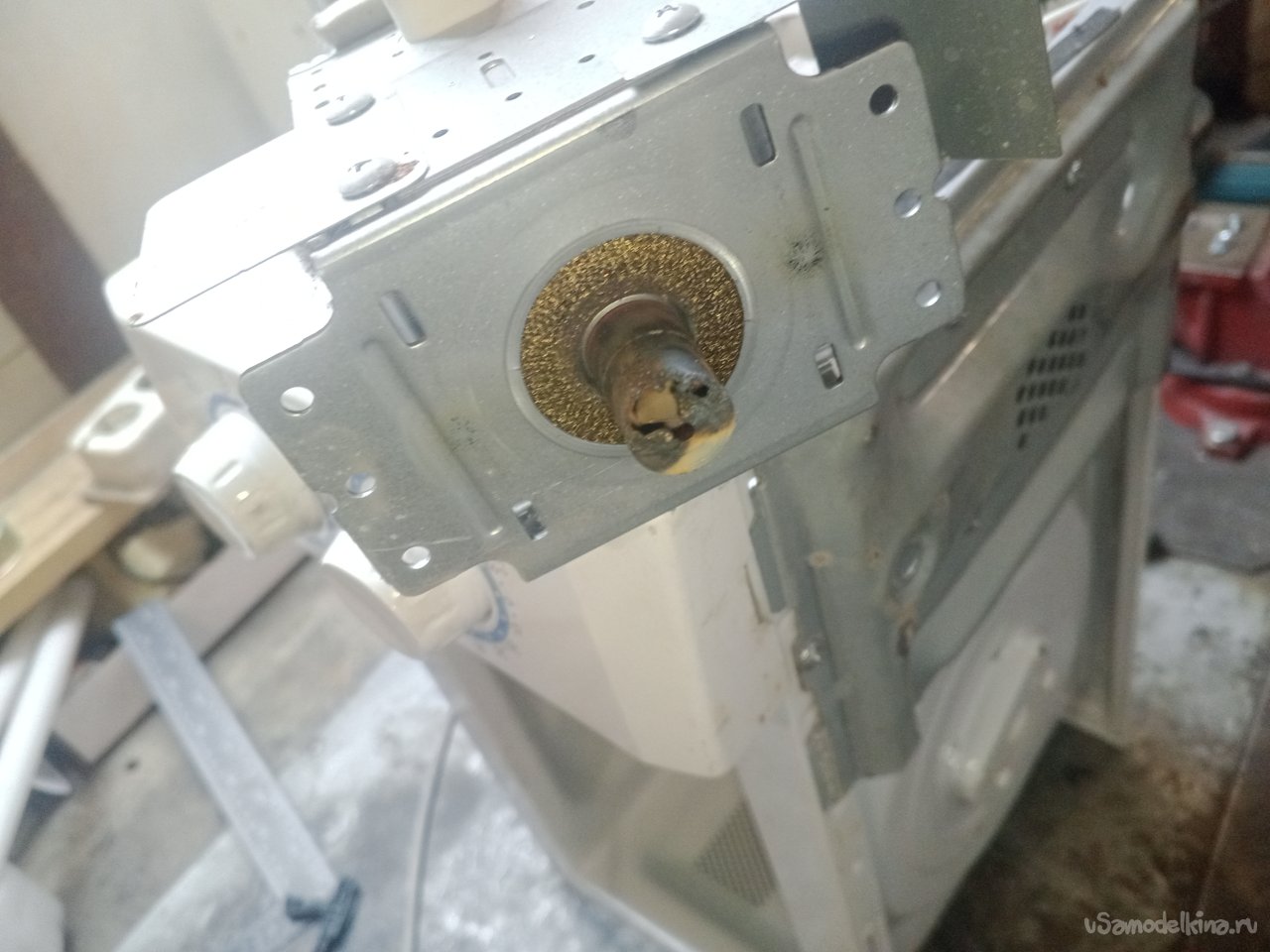Так, тихонько разбирая, я добрался до магнетрона. Даа, подустал «пациент», колпачок волновод выгорел от пробитой дуги.