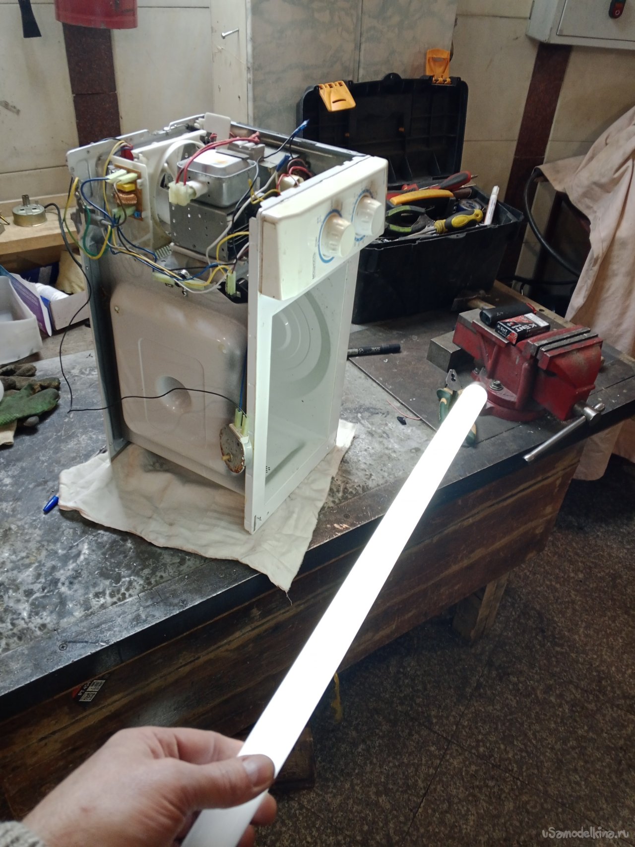 КЗ не было и уже хорошо, магнетрон с трансом «загудели», а освещение, вентилятор и моторчик для поворота тарелки «признаков жизни не подавали». При помощи люминесцентной лампы, определил, что магнетрон волны выдает. Где-то наверно «перемудрил» с проводами.