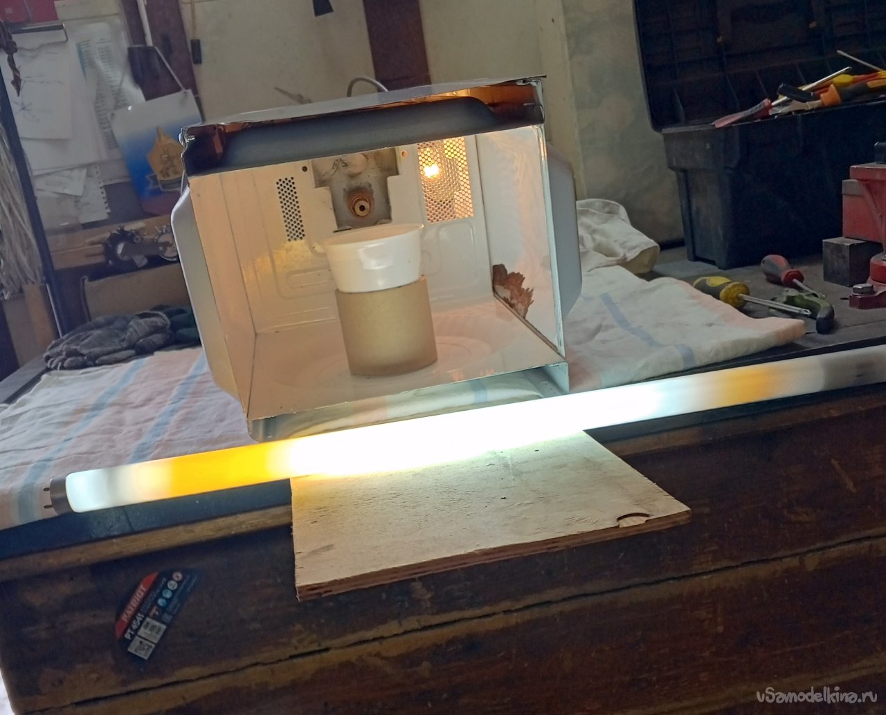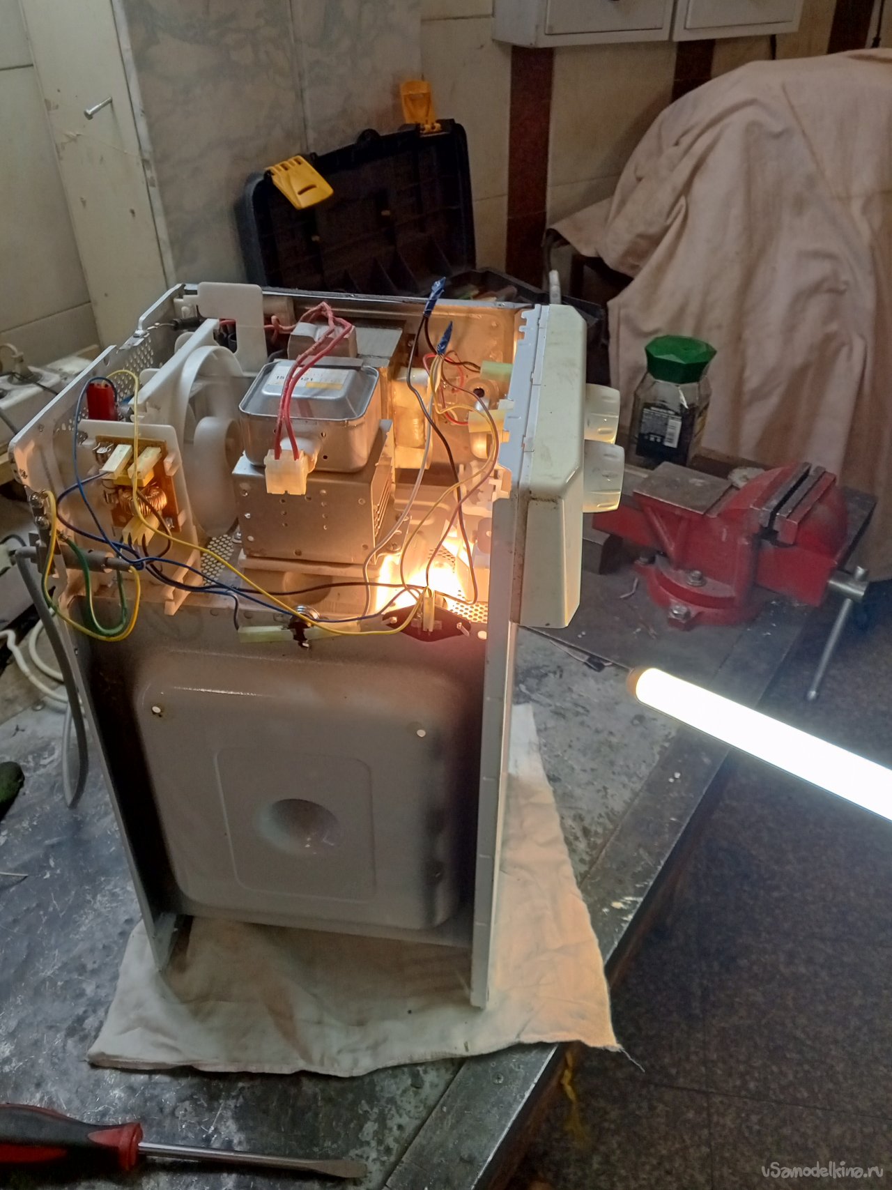 Не стал я пока экспериментировать с включенным магнетроном без защитного колпачка (пишут что если совсем рядом с собой это сделать, глазам будет совсем нехорошо)