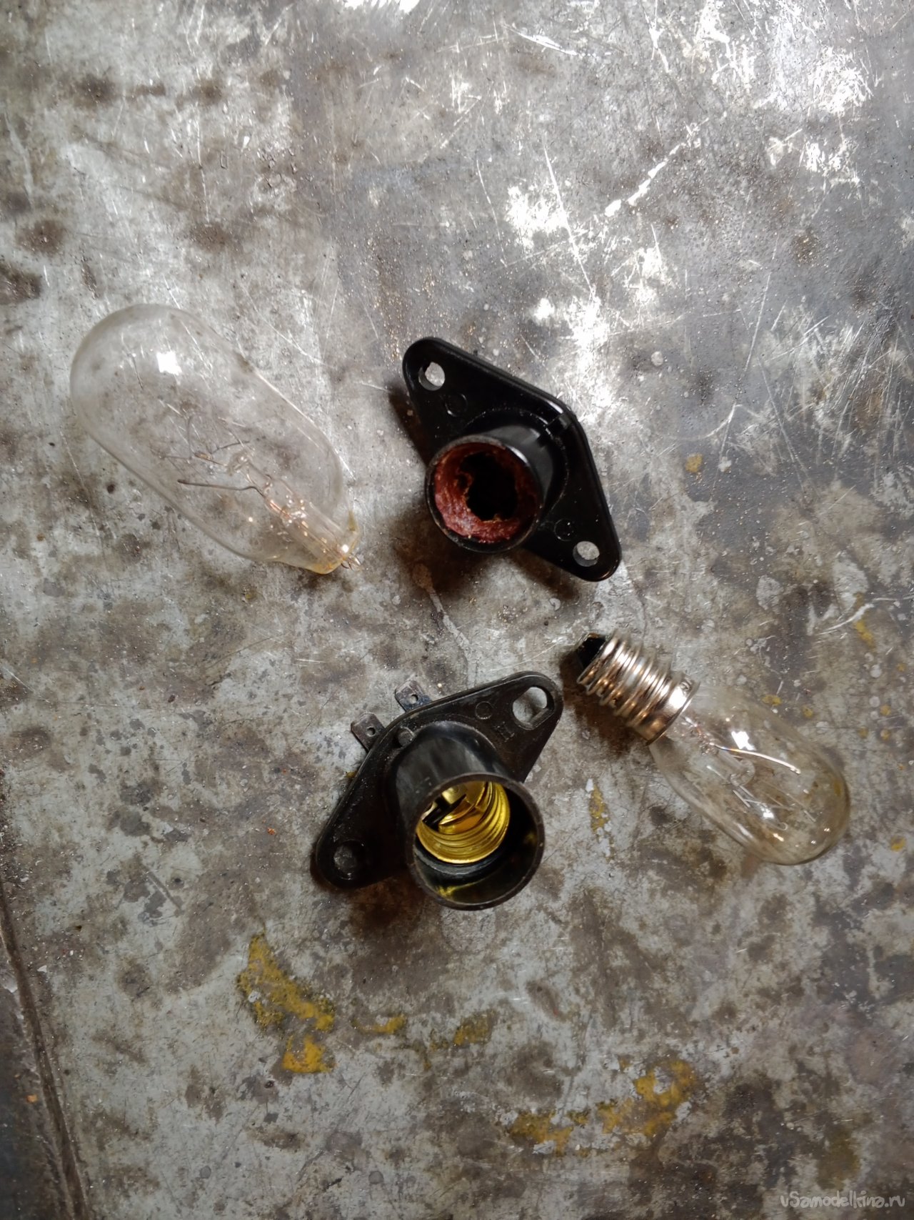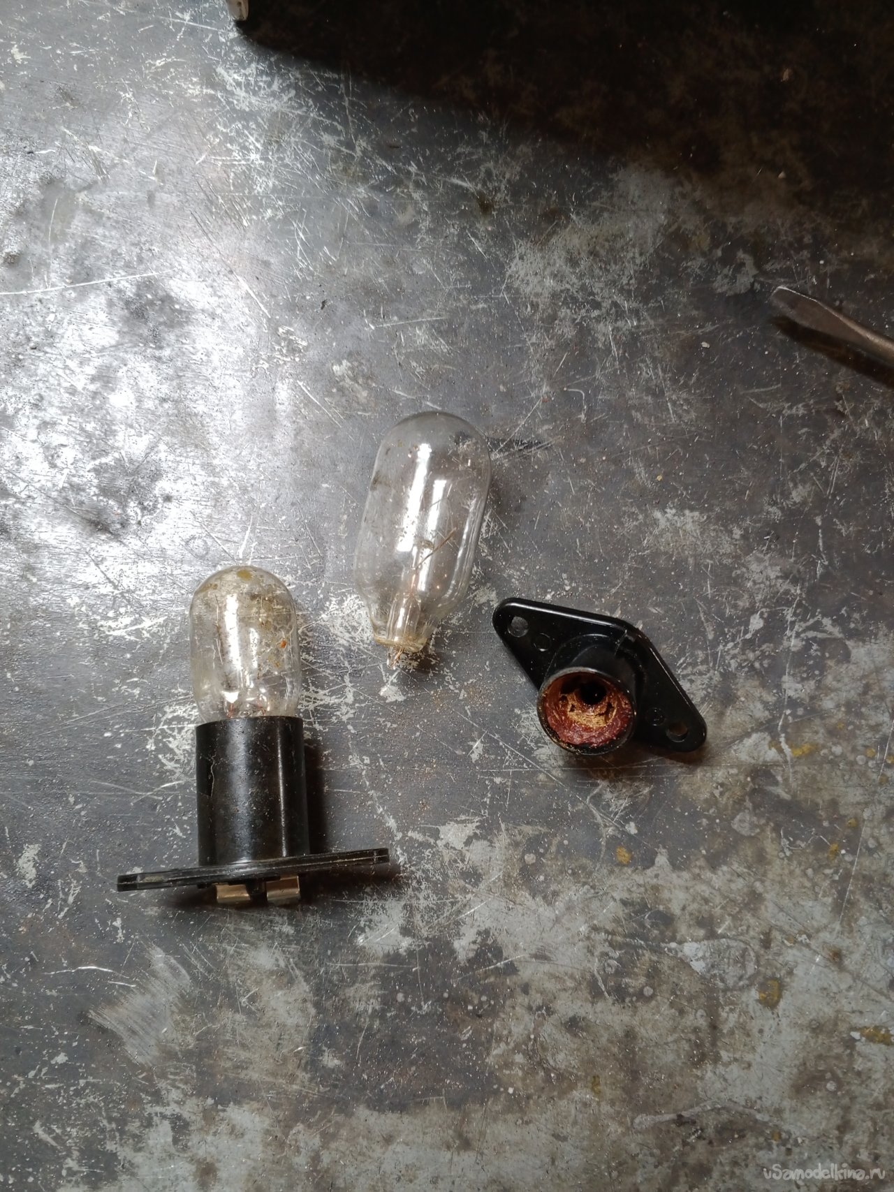 Если кто будет менять лампочки в микроволновках, учитывайте, что они разного исполнения, с цоколем и без него, посадочное место для крепления одинаковое, это я на примере простых 700 ваттных печек.