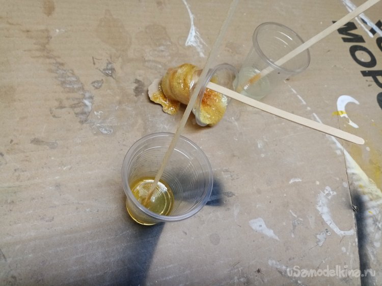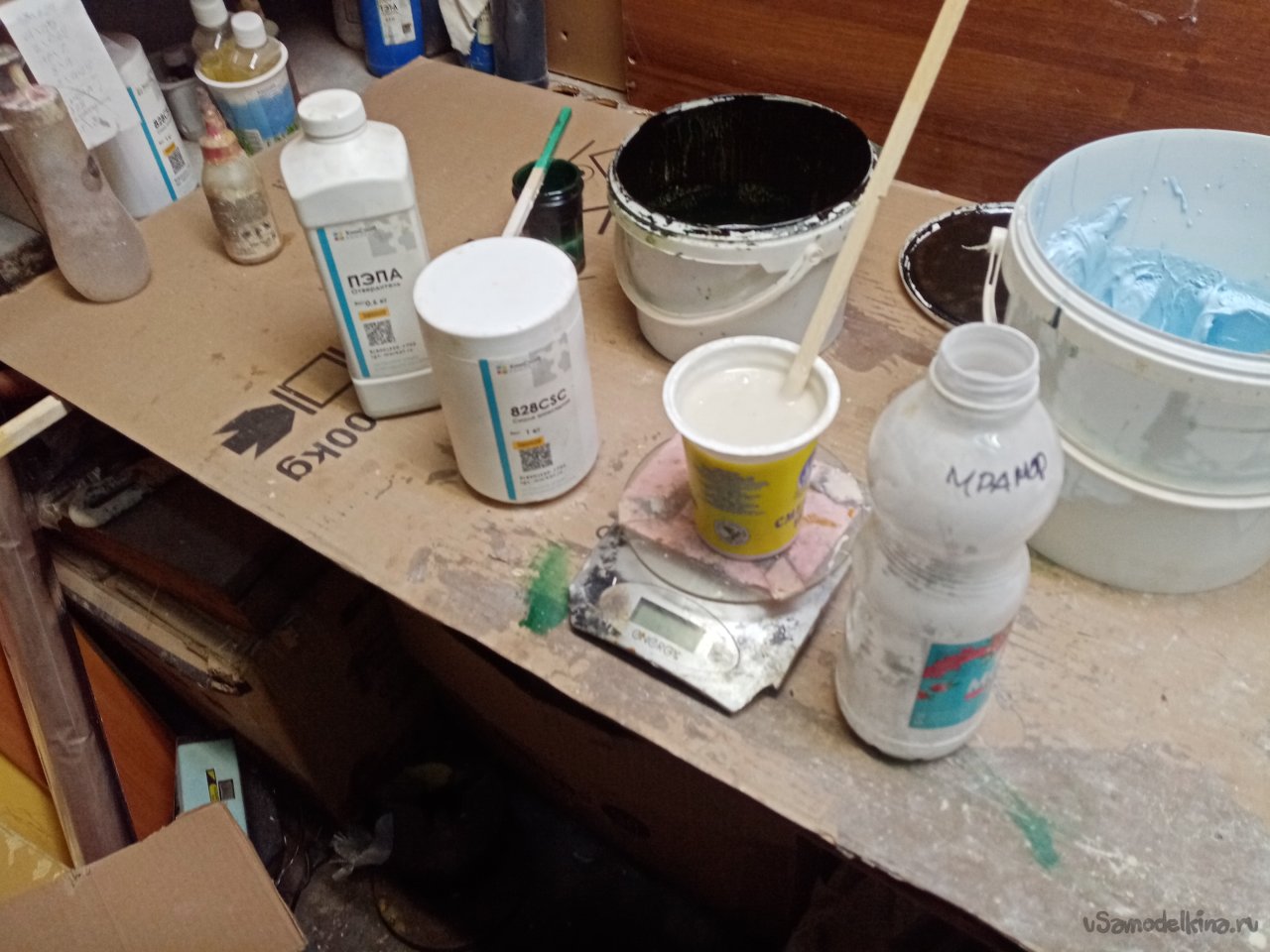 Тут подоспела еще одна партия смолы. Нужно провести тесты на смешивание с отвердителем. Как не странно партия от партии отличается. Хотя не много, но есть риск не попасть в пропорцию. Поэтому при покупке каждого количества эпоксидной смолы провожу контрольный замес. Примерно десяти грамм. Есть конечно и другие способы проверки. Но я предпочитаю именно этот. Придется потерпеть сутки, убедиться что попал в нужную пропорцию. И так приступаю.