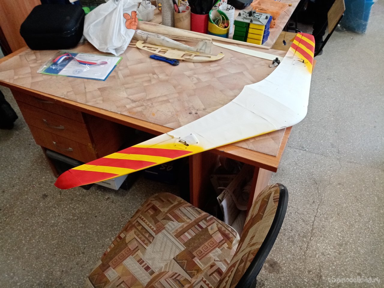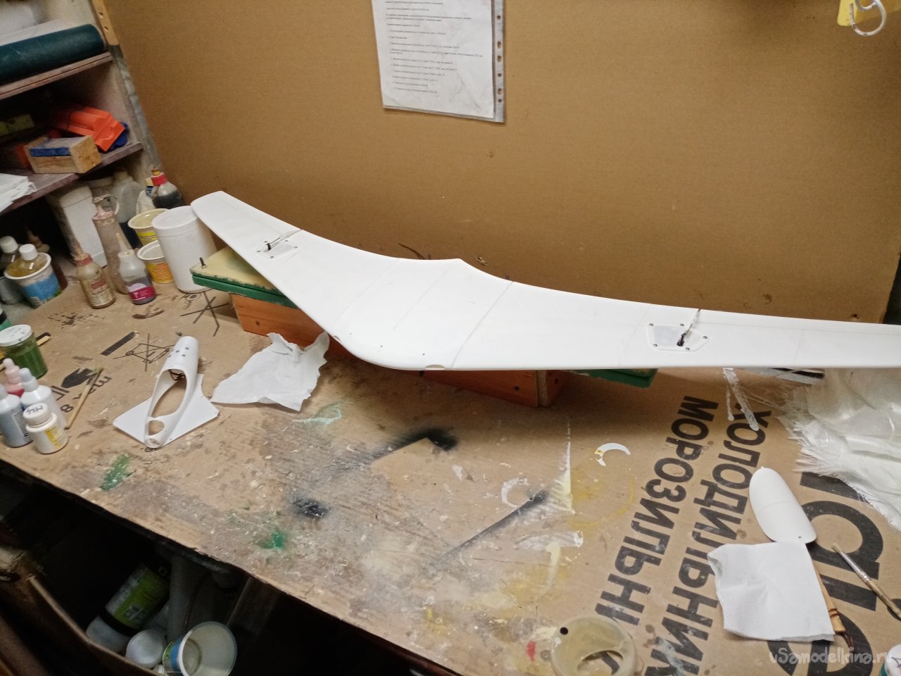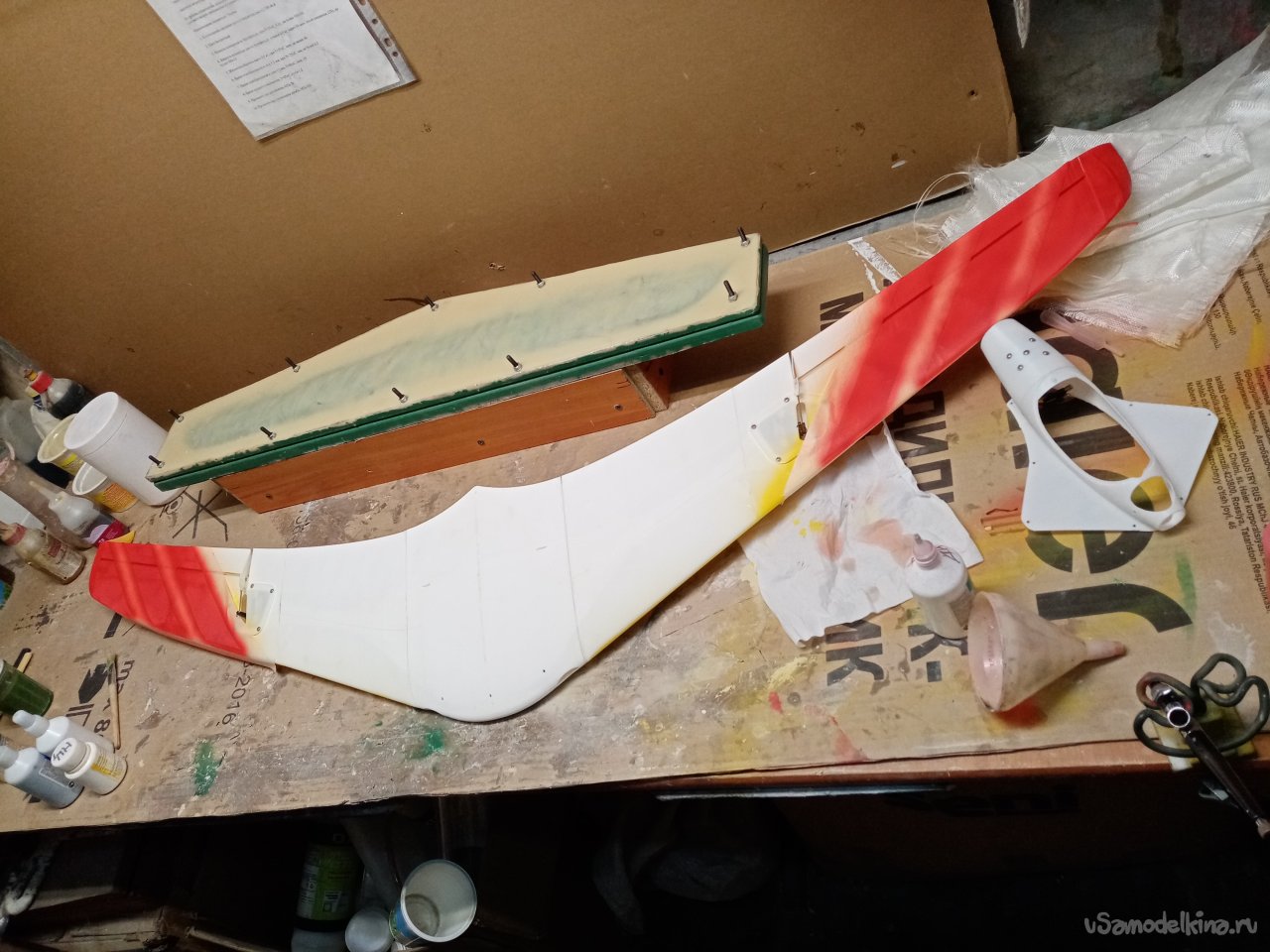 Мой товарищ прислал подарок из Москвы. Напечатанное на принтере крыло. Вернее не все, а отдельные части. Склеил, тестировал, облетал. Все как у людей, порядку. Сейчас нужно навести красоту. Иногда отступаю от принятой процедуры. Когда нелетная погода и делать нечего, сначала окрашиваю самолетик, затем на тестовые полеты. Особой разницы в процедуре не заметил. В предрассудки не верю. За исключением 13 числа, черной кошки, нельзя наступать на порог, встречные номера машин с двумя нулями, или с тремя буквами «ООО»……. Переступать через лежащий самолетик…..и дальше по мелочи.