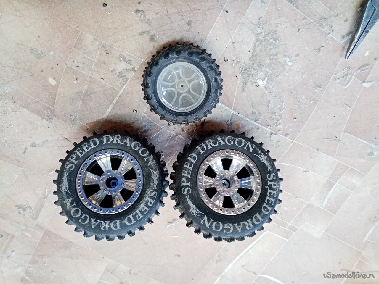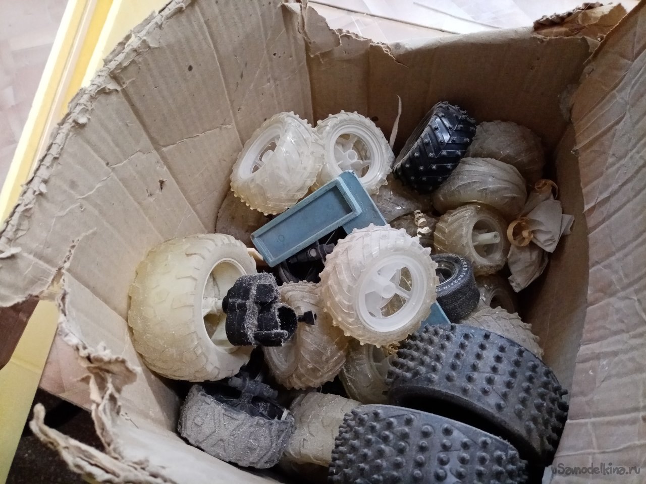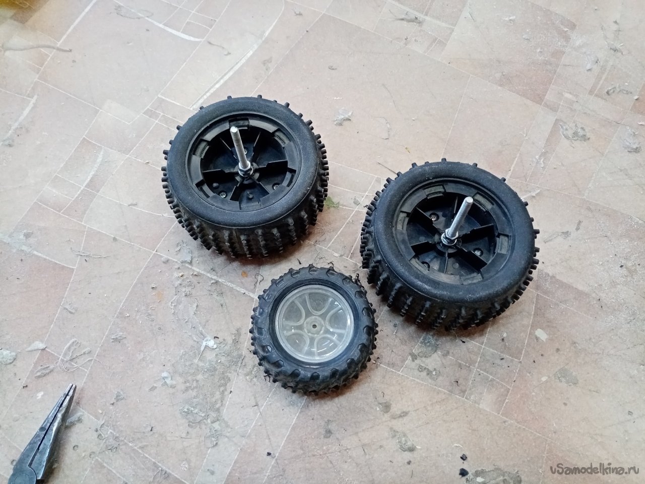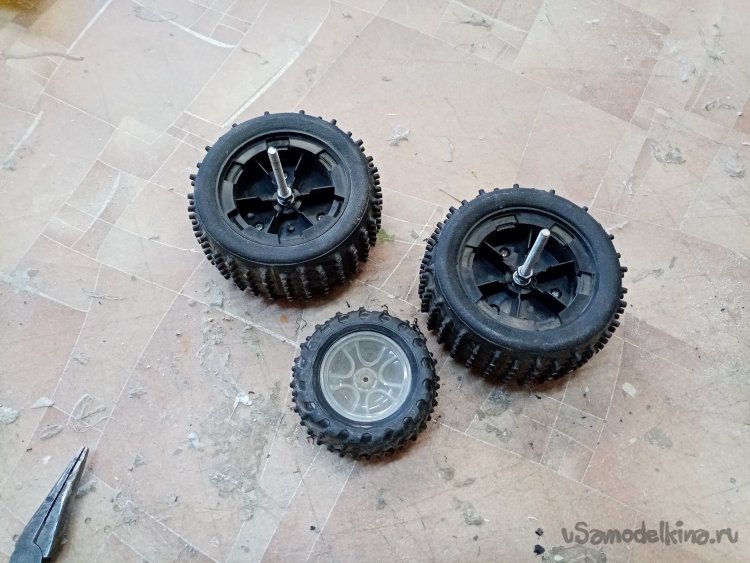 Достаточно давно наши знакомые закрыли сервис по обслуживанию и ремонту радиоуправляемых машинок на электротяге. И презентовали несколько коробок запчастей. Средин этого печального наследия и некоторое количество колес различной конструкции. Витала идея к их применению. Решил изготовить аэросани на колесах. Управление сделаю при помощи поворотного колеса. Аэродинамический руль как на наших стандартных аэросанях, не вяжется.