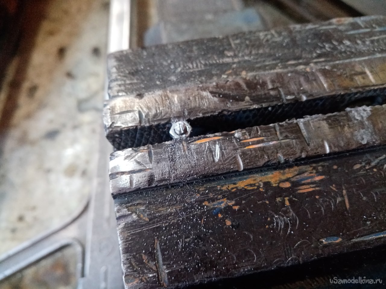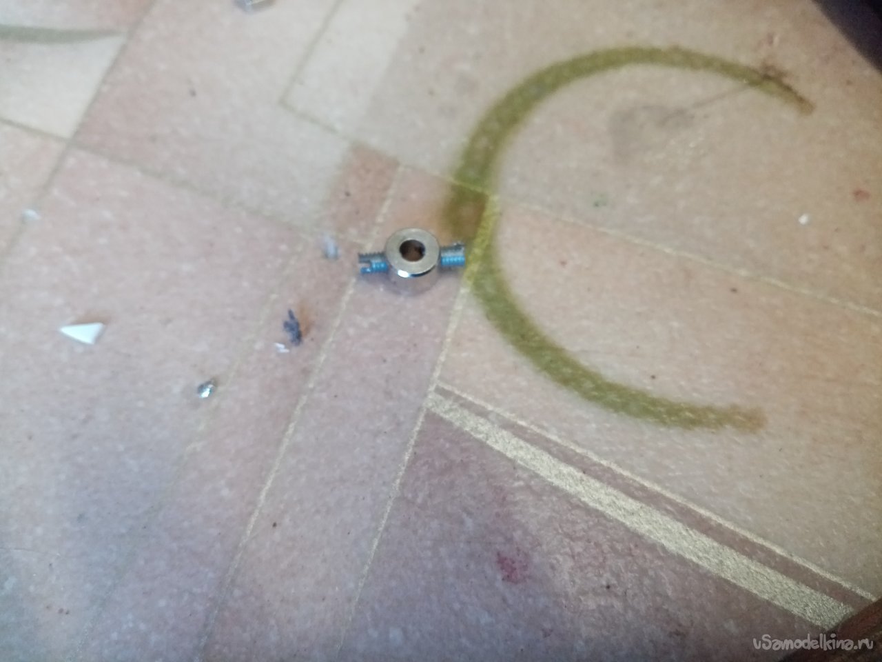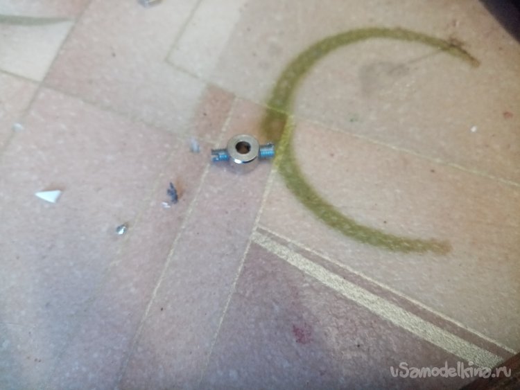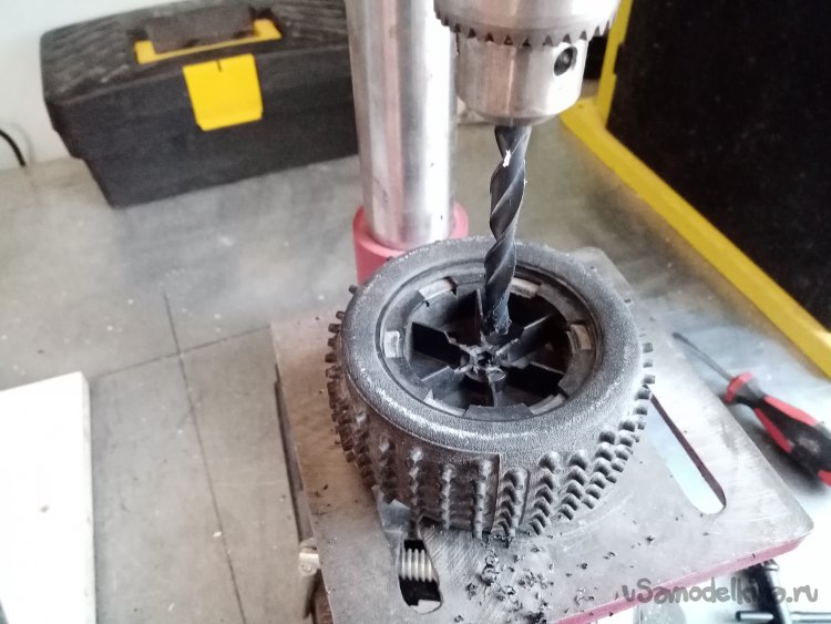 Колеса нужно посадить на оси. Некоторые места в осях повреждены. Поэтому высверливаю разломанные части, зачищаю края.
