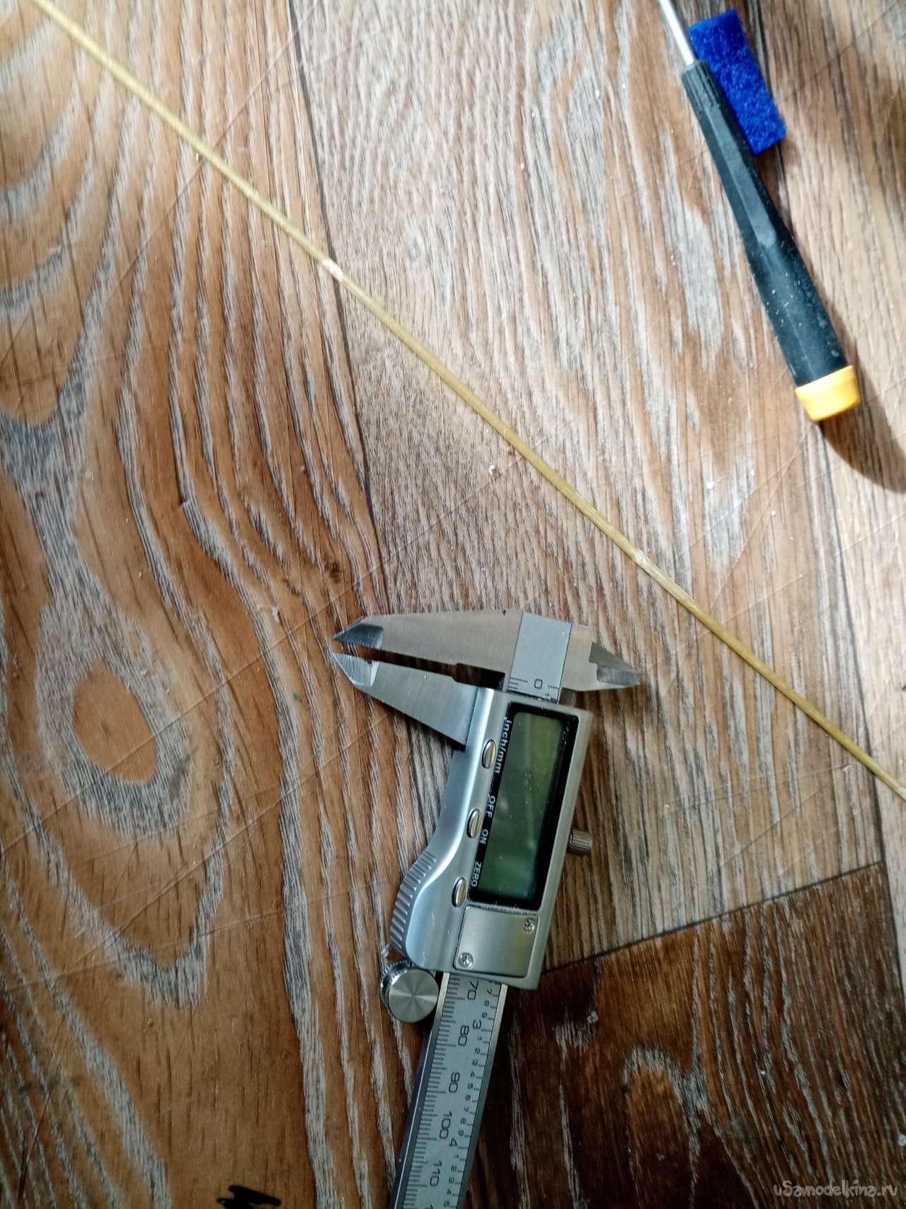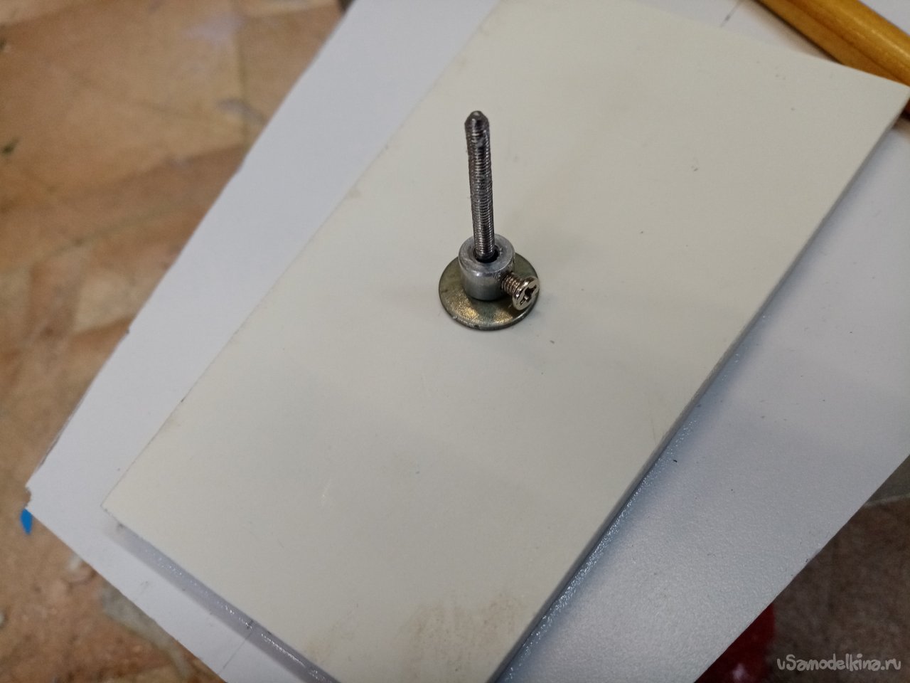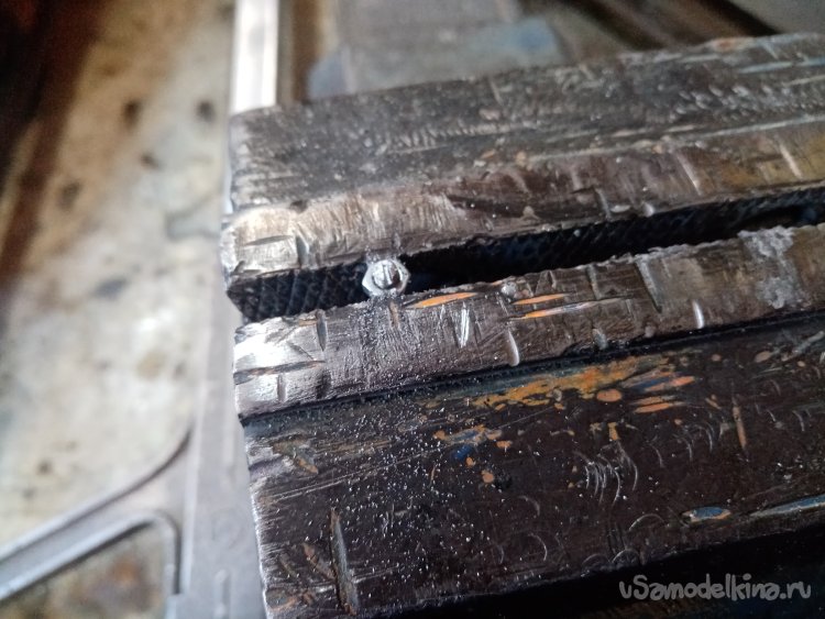 Опять разбираю конструкцию. Отрезаю прутик на нужную длину, на конце нарезаю резьбу. И собираю все «в зад».