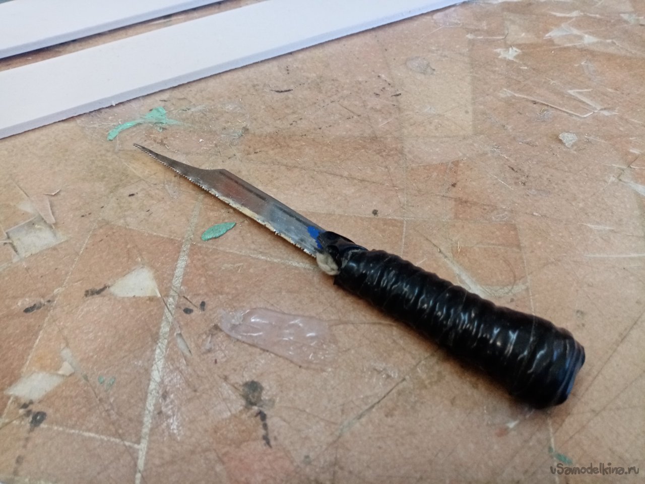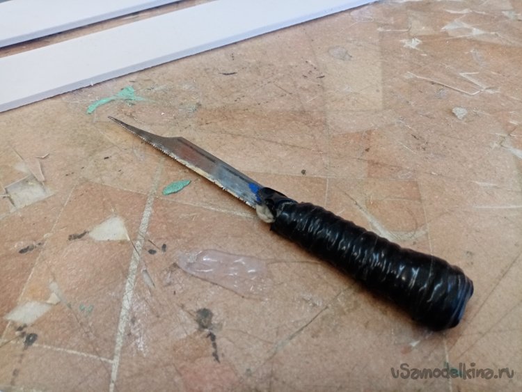 По углам сверлю отверстия для поворота пилки лобзика. Но вот незадача лобзиком невозможно работать в почти готовой конструкции. Применяю самодельную пилку специально для таких случаев. Изготовленную из обрезка пилки по металлу.