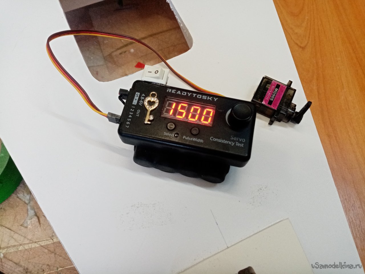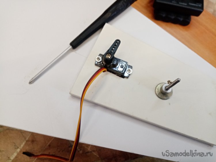 Возвращаюсь к переднему колесу нужно собрать систему управления. Для этой цели использую 9 граммовый сервопривод с металлическим редуктором. Перед установкой обязательно проверяю работоспособность при помощи сервотестера.