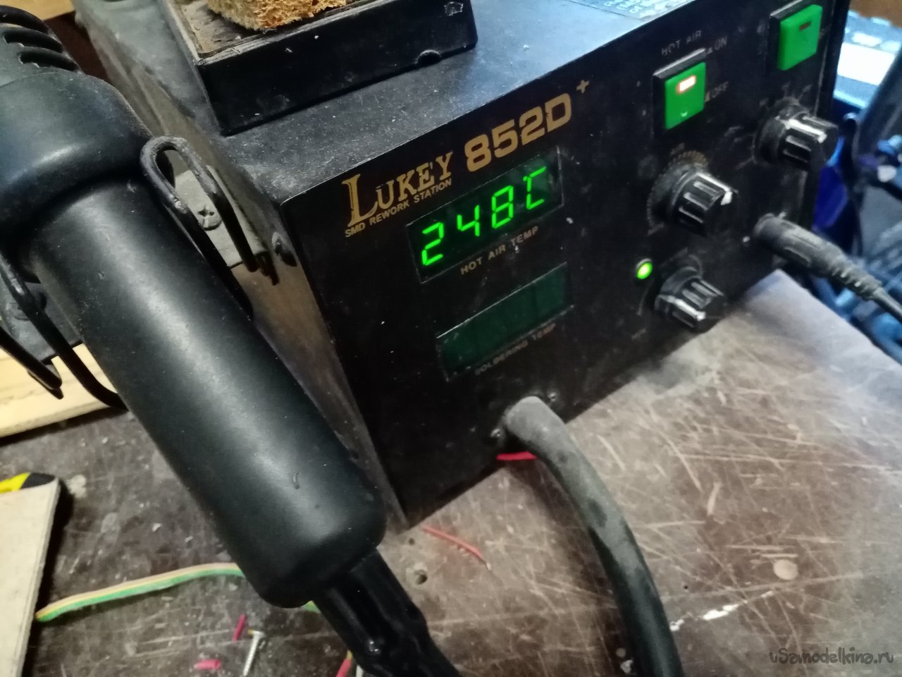 Вариант второй фен для распайки. В данный момент стоит большая температура. Скручиваю до минимума. Ё мое…. минимальная 160 градусов. Опять много. Можно конечно и просто так поддеть панель. Но есть риск нарваться на хороший скотч и сломать тонкое стекло. Начинаю шарить по углам.