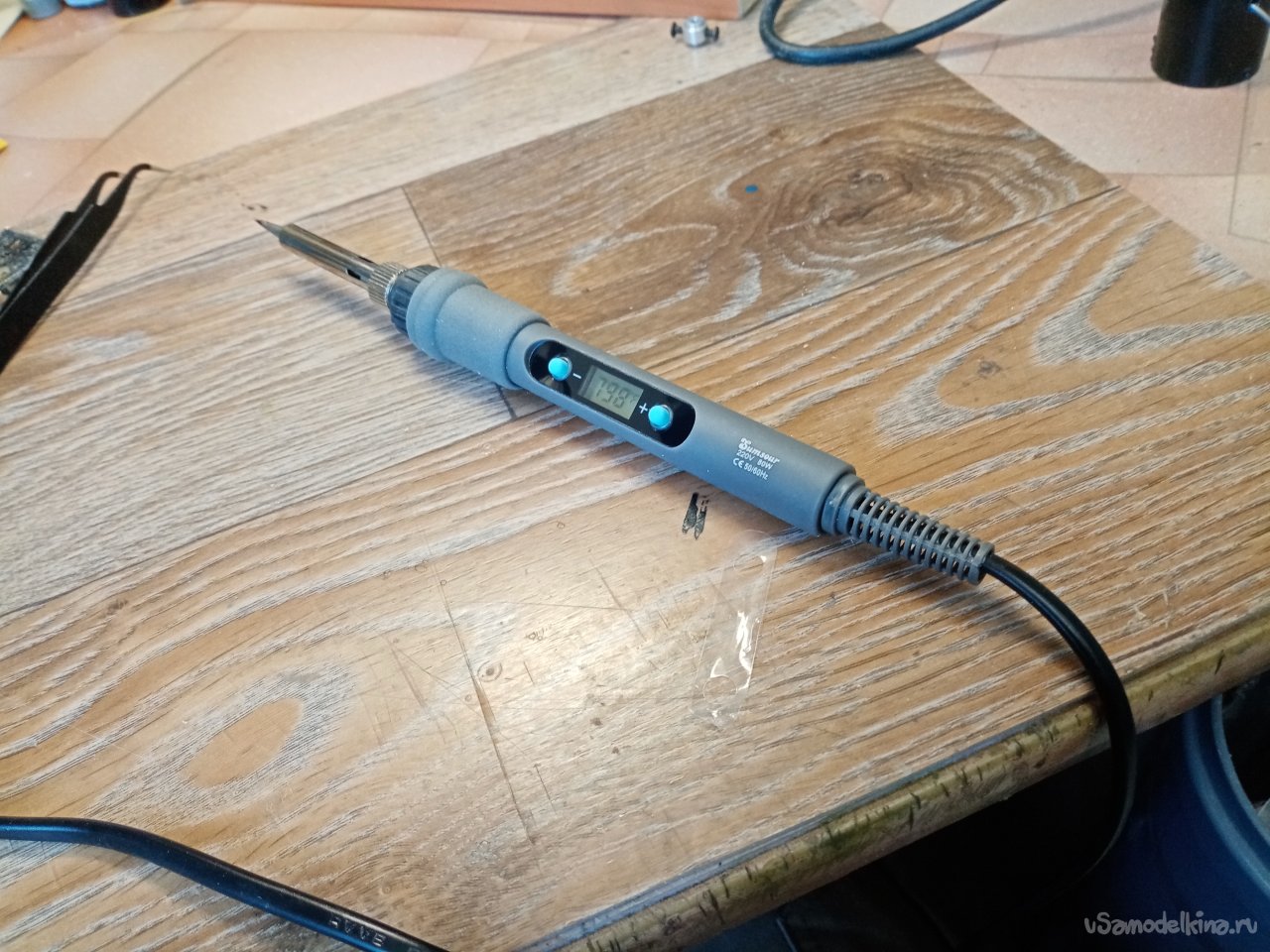 Неисправность на лицо. Припаиваю оторванный проводок. Поэтому не слышно звука.Своим новым паяльником. Хороший маленький инструмент оказался. Правда немного ошибся и заказал с дисплеем, ориентируемым на градусы Фаренгейта. Пришлось залезть в интернет и ознакомиться с переводом Фаренгейта на Цельсия. Установил, паяло на 798 градусов. Работает отлично. Есть несколько сменных жал. Проверяю не пишет. Порылся в закромах нашел плату от фотоаппарата, перепаял микрофон. Не пишет. Нашел еще один микрофон. Перепаял. Порядок звук появился.