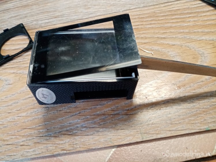 Снимаю фронтальную панель, там болтики крепления. Основная плата соединена с дисплеем. С обратной стороны панель просто приклеена на двойной тонкий скотч. Первое движение, полностью отщелкиваю переднюю крышку корпуса при помощи «универсального» открывателя с медицинским прошлым.