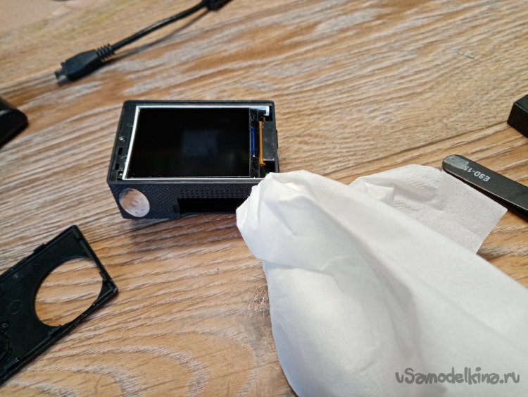 Осталось немного безворсовых салфеток. Протираю дисплей. Собираю полностью устройство.