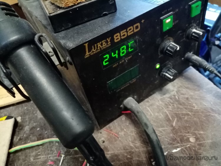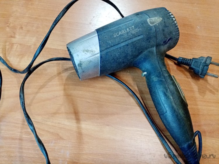 Ага, есть контакт! Нашелся фен для волос. Хорошо греет примерно до 70 градусов. Такой температурой точно ничего не расплавлю.