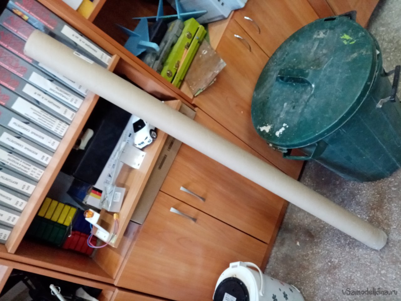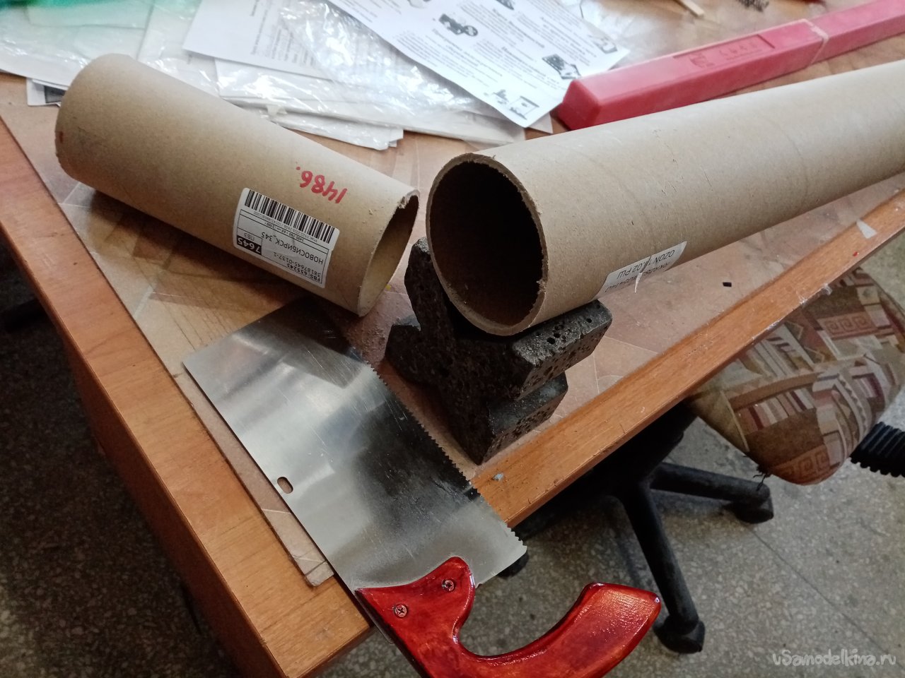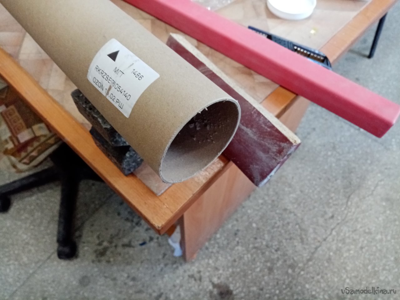 Давно принял решение на изготовление более удобного пенала. И вот подвернулась трубочка от упаковки карнизов для штор. Ровная, не поврежденная, с пластиковыми заглушками по торцам. Заготовка есть можно начинать процесс.