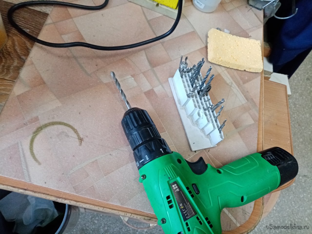 Подбираю сверло нужного диаметра и просверливаю три отверстия в днище.