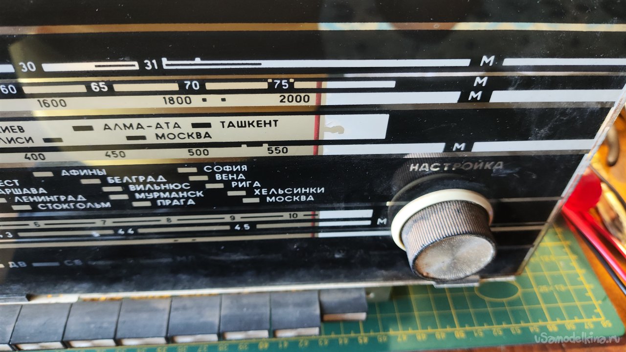 Вместо частоты, как это принято в современных FM тюнерах, в советское время на шкалах использовали маркировку длины волны в метрах. Так, например, на приемнике «Океан - 214», профилактическим ремонтом которого я в феврале прошлого года занимался, указан диапазон УКВ 4,06 - 4,56 м. На «Кантате - 204» нет строгого диапазона на панели, цифрами указаны только от 4,1 до 4,5 м, но визуально это примерно от 4 до 4,55 м, что соответствует частотному диапазону 65,8 – 74,9 МГц (посчитал в специальном калькуляторе, отучили нас от формул).