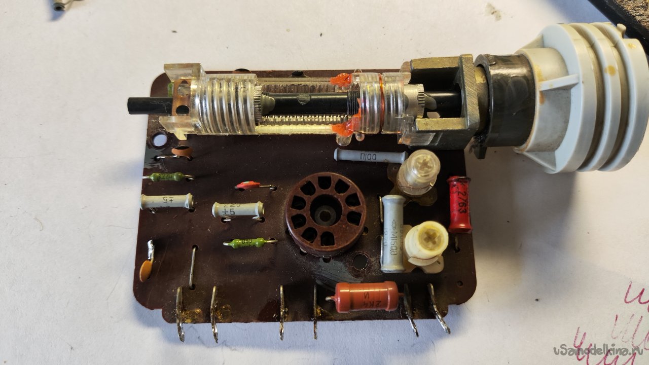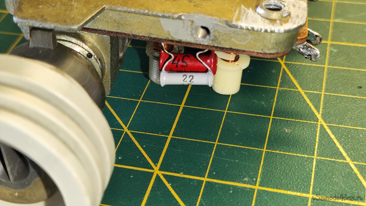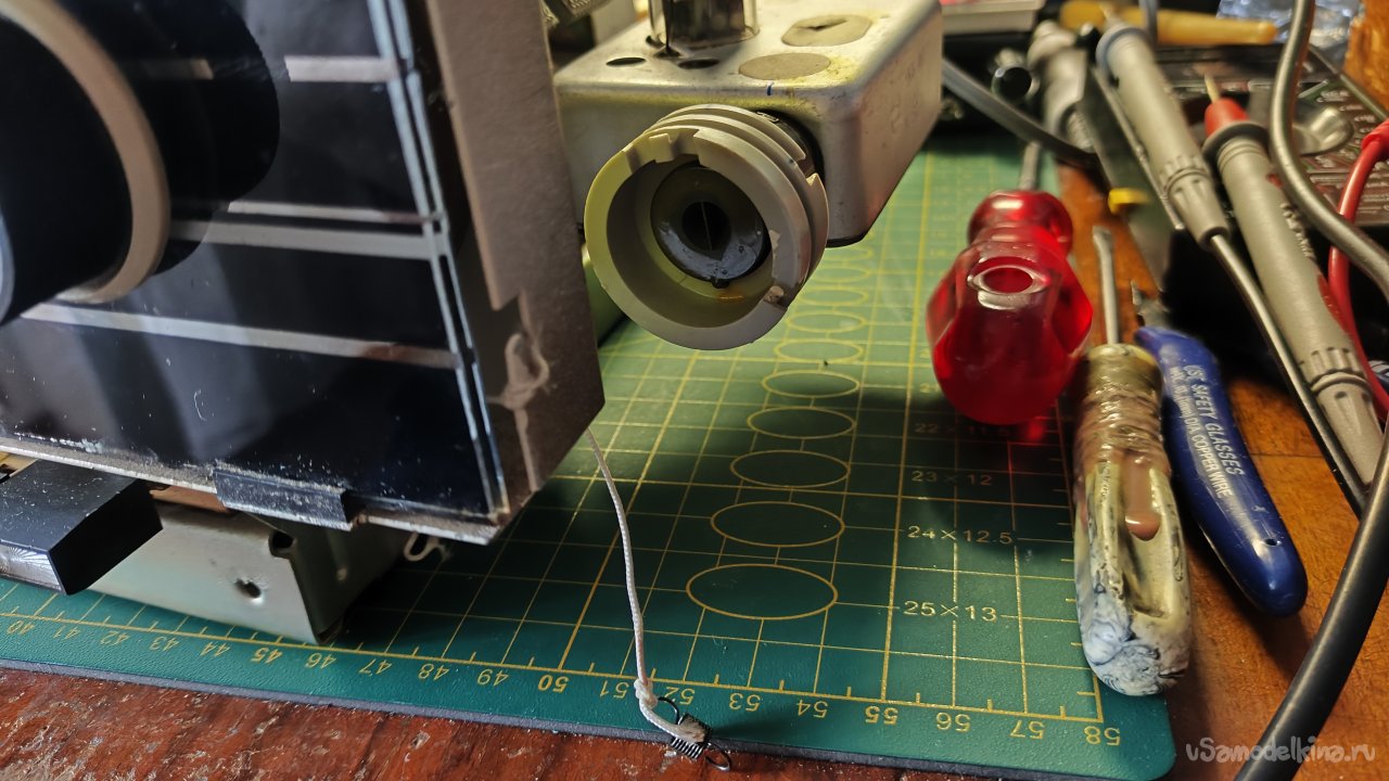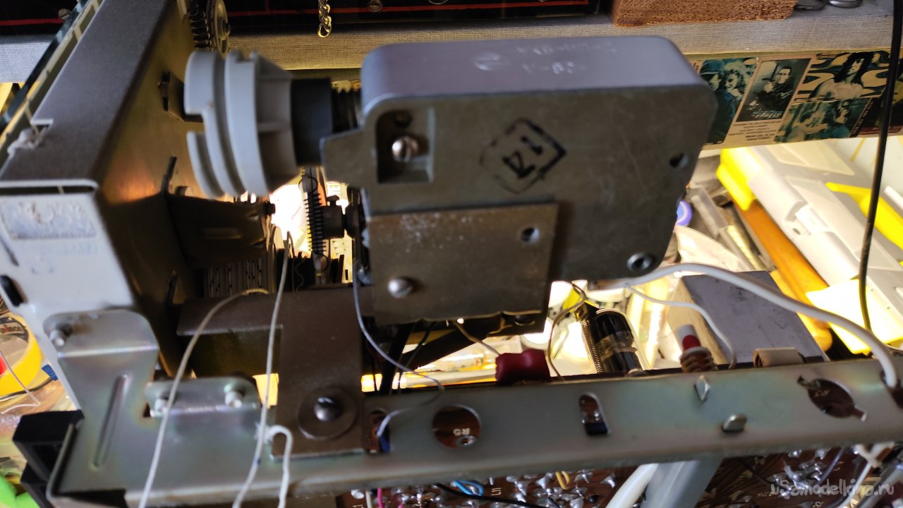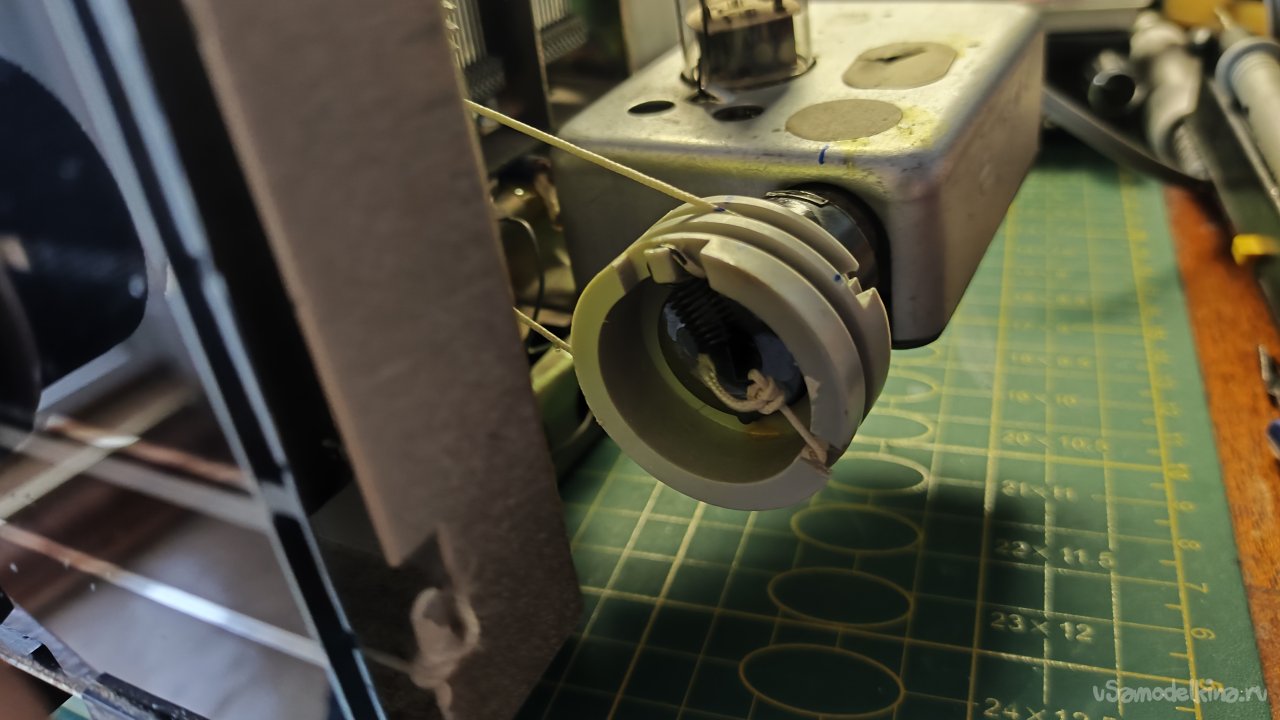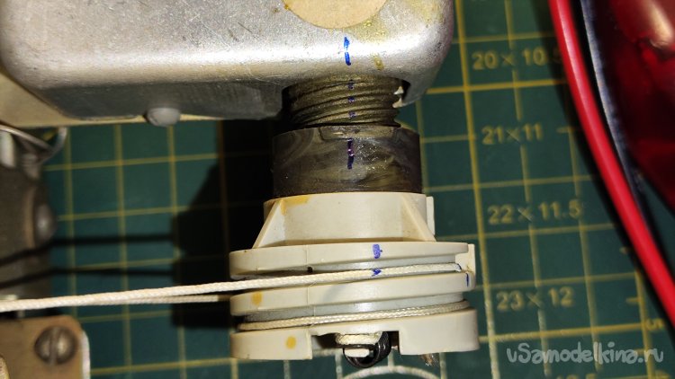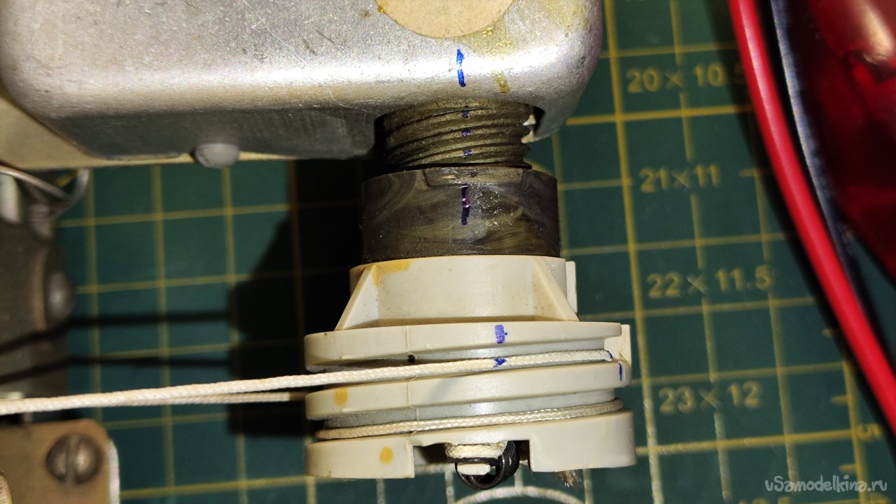 Снимаю лампу. Пометил маркером положения шкива и нити в крайнем правом положении, чтобы при сборке был ориентир, если что-то будет идти не по плану.