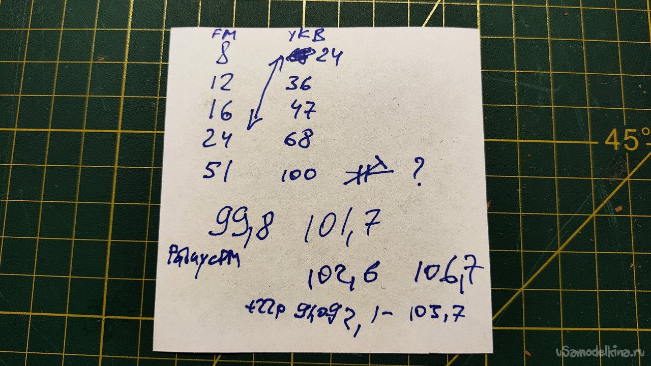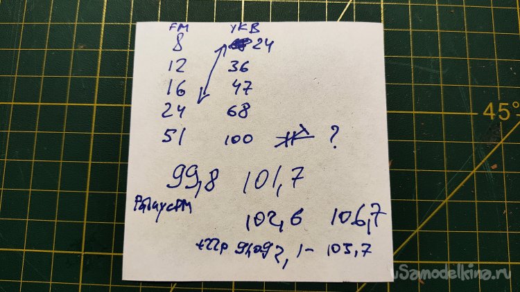 Проверяю полученный диапазон методом поиска станций и сравнивая их с другим приемником, у которого есть индикация частоты. Получилось что-то совсем не очень 99,8 – 101,7, если не сказать очень плохо.