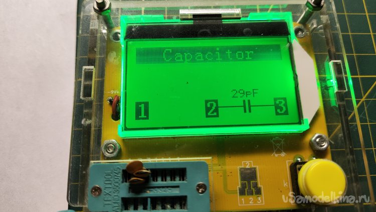 Мой любибый прибор LCR - meter, как оказалось, не способен измерить емкость меньше 20 пФ. Но я нашел выход, добавляя параллельно к одному конденсатору другой. Вот, например, три конденсатора по 10 пФ имеют измеренную суммарную емкость 29 пФ, что вполне себе говорит о точности измерения.