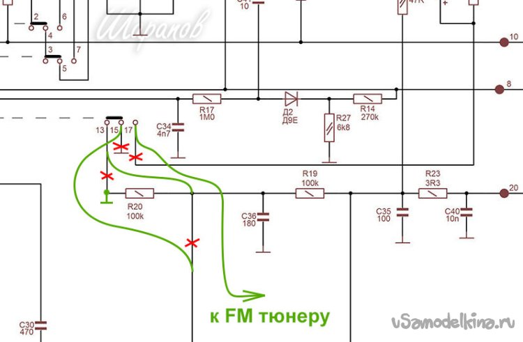 Кстати, если есть желание заменить блок УКВ ИП-2 на другой внешний блок FM с НЧ выходом, то в интернете есть такая схема модернизации.