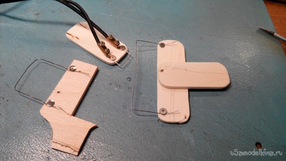 Все фанерные детали нужно утопить в массив крыла заподлицо. Из нихромовой проволоки изготовил резаки нужного размера. Настроил на рез в глубину на 4 мм. По размеру вырезаю углубления в нужных местах. Примеряю закладки.