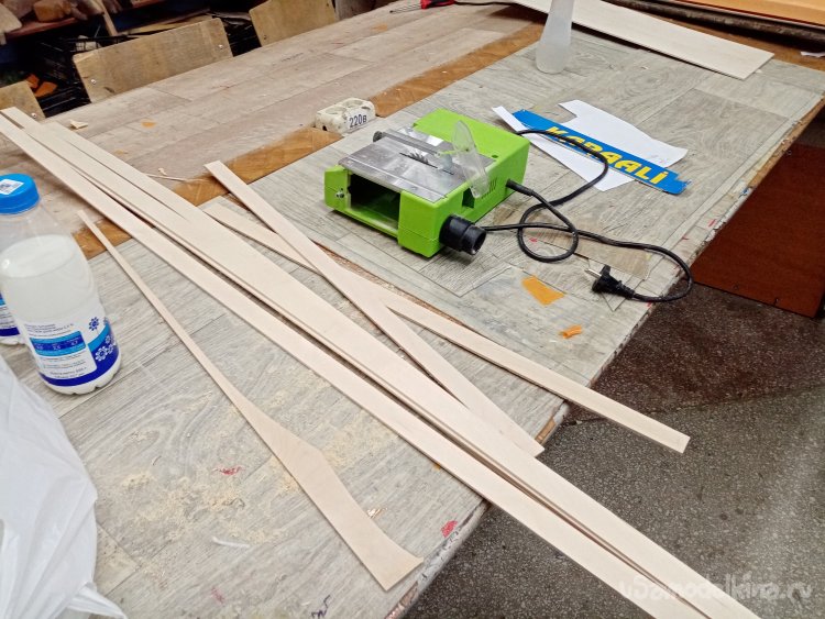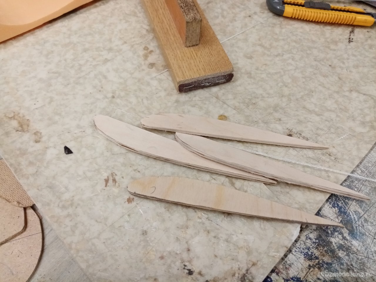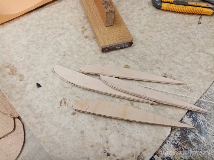 Лонжероны усиления выпиливаю из шлифованной фанеры толщиной в 4 мм. Товарищи просили увеличить прочность. Согласовал с ними варианты усиления.
