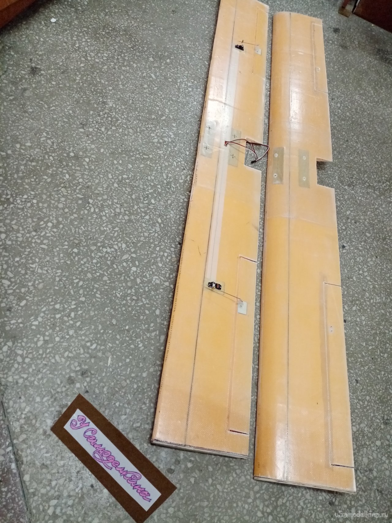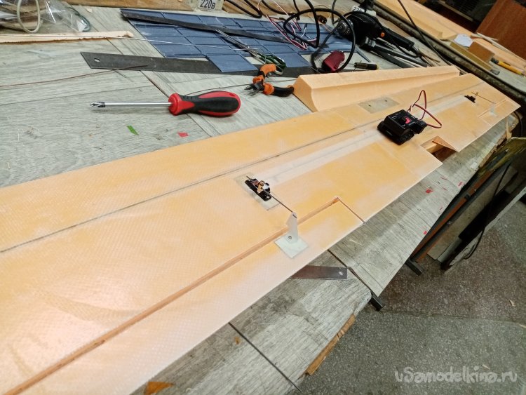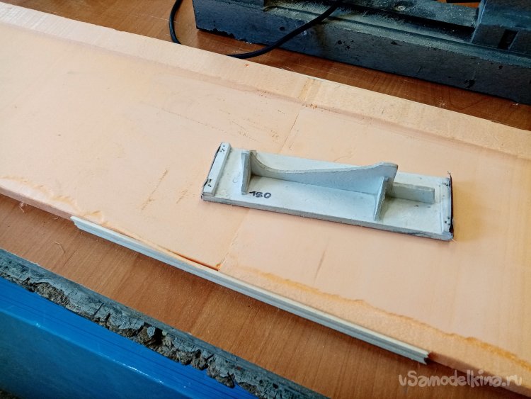Второй день работы над крыльями. Все склеилось. Шлифую поверхность утюжками со шкуркой различной зернистости.