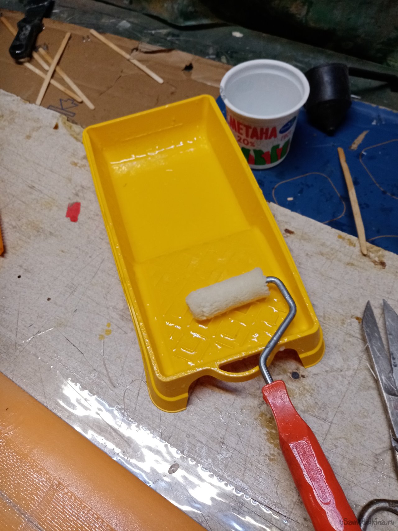 Дальше «кина» не будет. Расскажу словами, перчатки в смоле. Применяю такие, нитриловые перчатки. А также разовые салфетки и палочки для размешивания смолы. Развожу в стаканчике от сметаны. Люблю сметану еще с командировок. Вечерком покупаю стаканчик и булочку. Откушал в номере и на боковую. Утром понятно шведский стол и порядок.