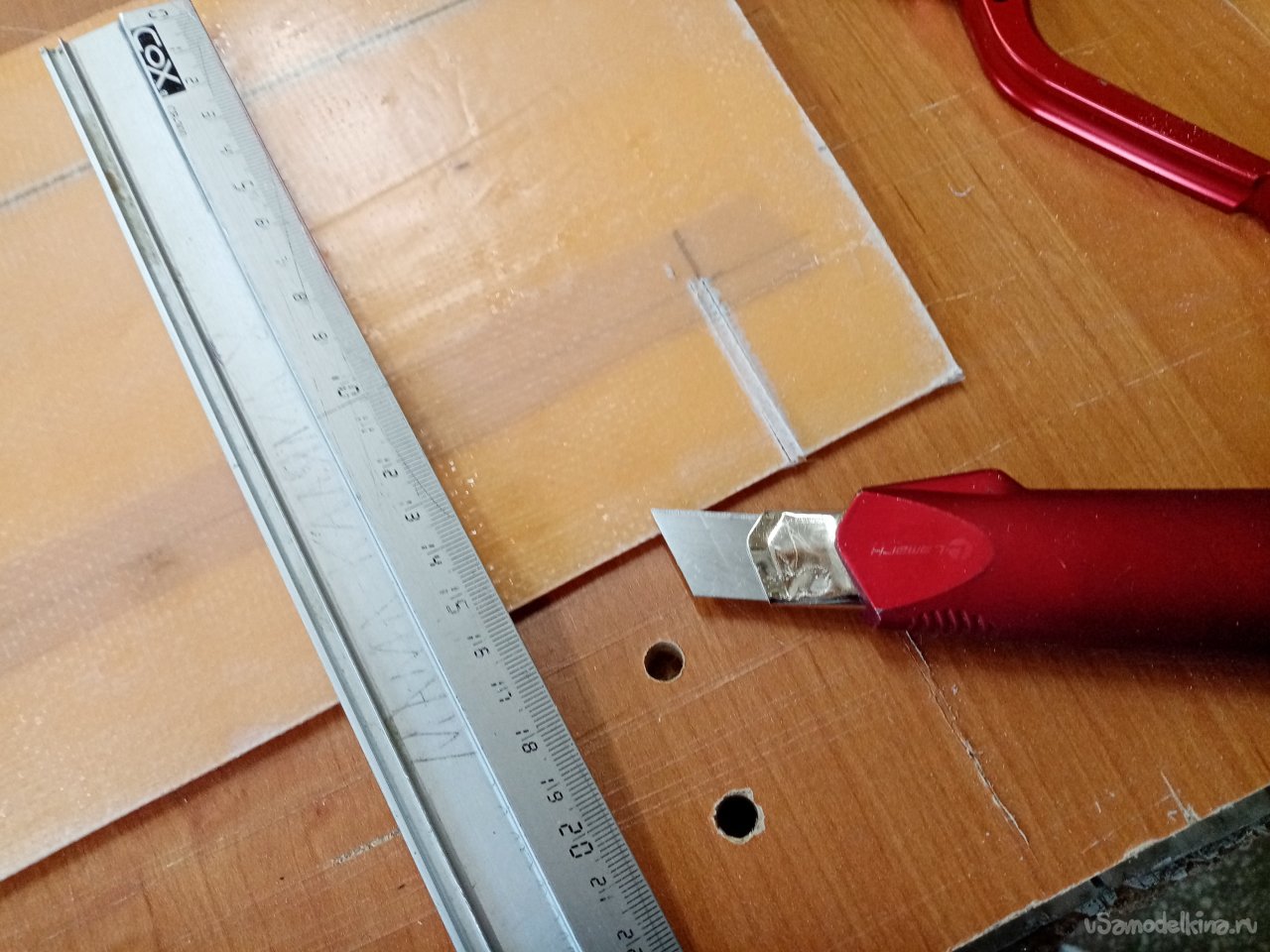 Шаблон расположения отверстий под винты крепления и выреза в задней кромке. Размечаю, отрезаю.