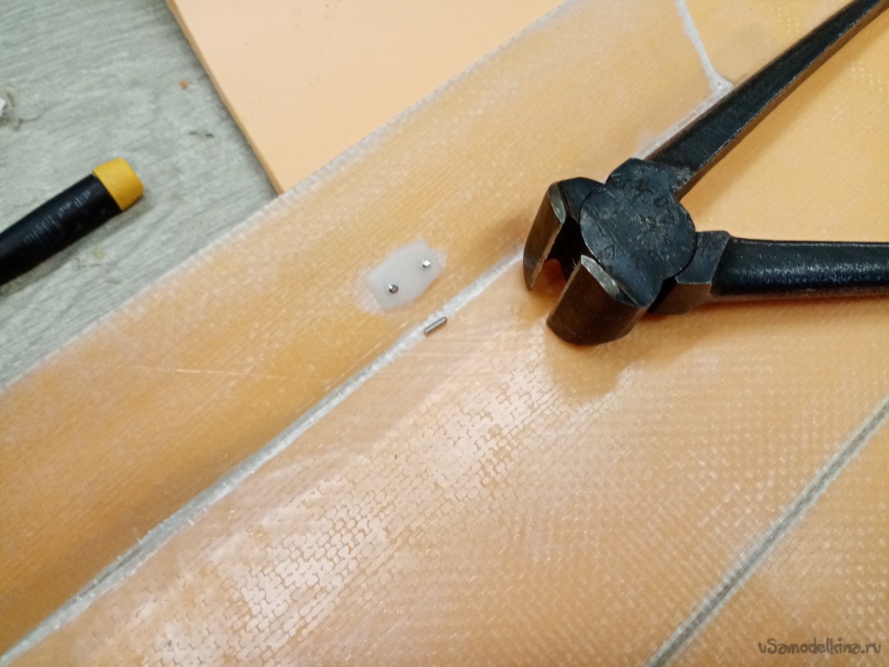Непорядочек. Болтики слишком длинные откусываю лишнее, надфилем заглаживаю острые кончики.