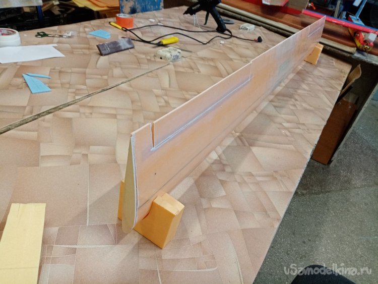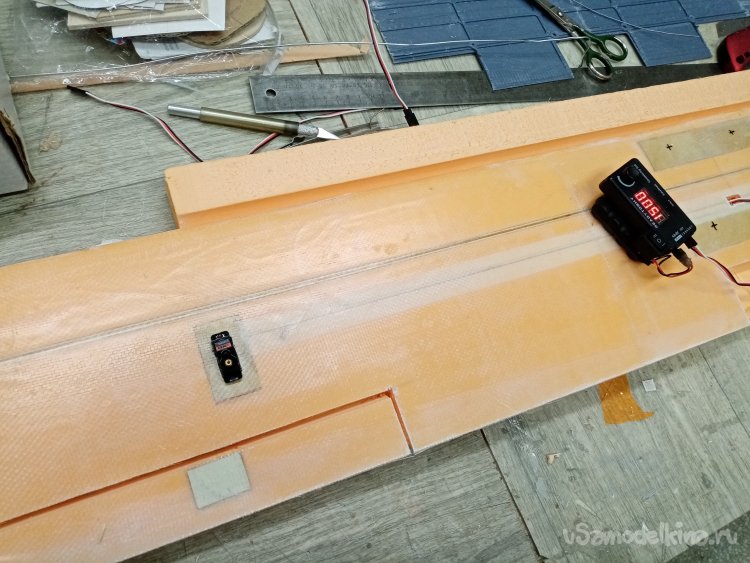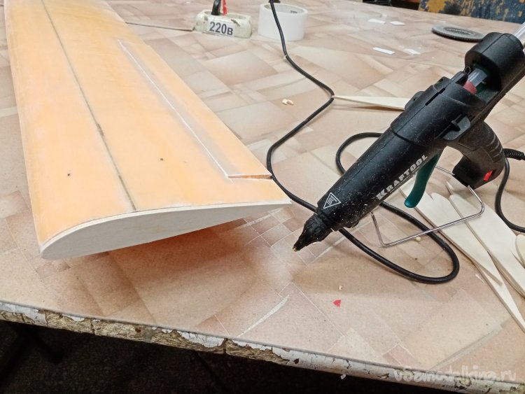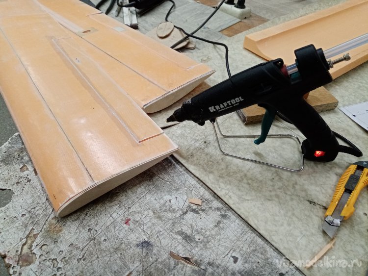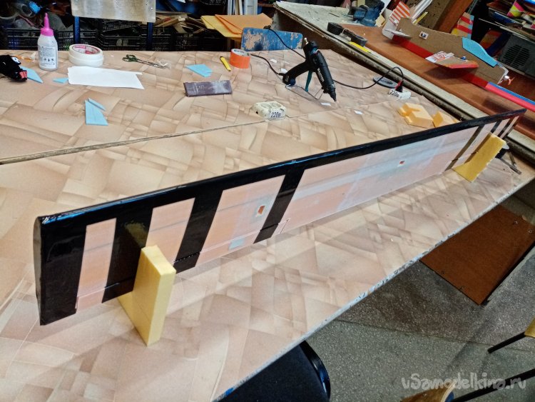 Примеряю крыло. Все, хорошо можно начинать оклейку.