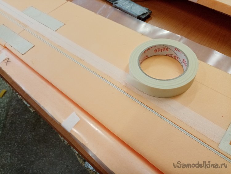 Место прореза закрываю полоской малярного скотча. При формовке в канал не должна попасть эпоксидная смола.