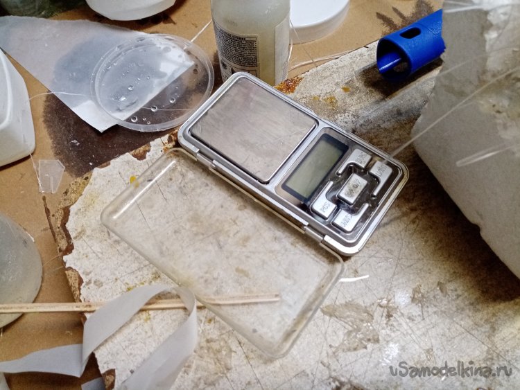 Закуплена очередная партия смолы. Замешиваю пропорцию в 10 грамм. Каждый раз нужно проверять. Партии немного отличаются и отвердителя нужно добавлять на микрон больше или на микрон меньше. На лезвии ножа нагреваю капельку смолы. Застыла хорошо, такой экспресс метод. Можно замешивать.