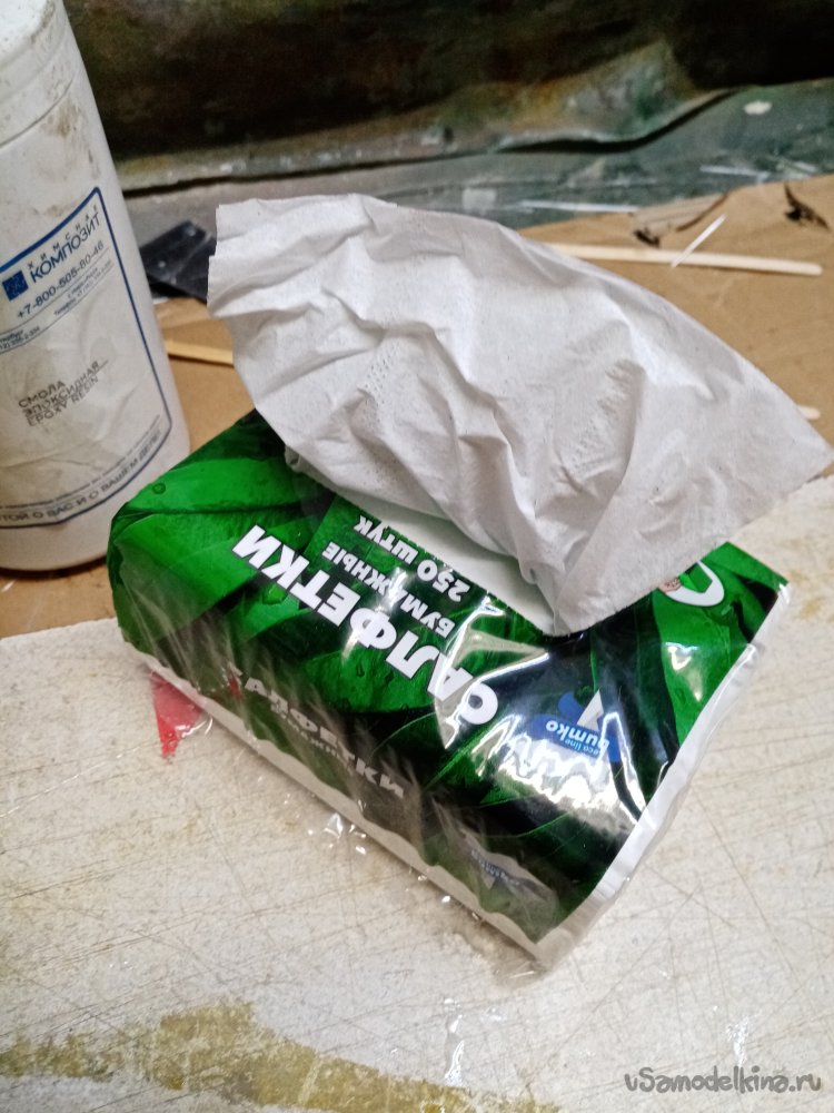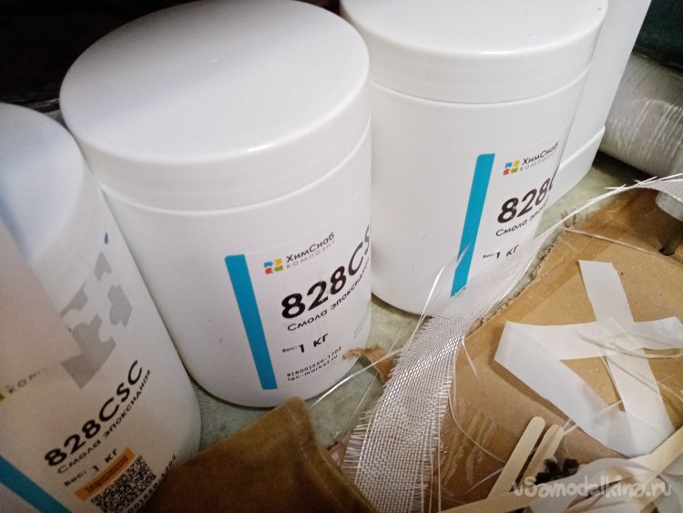 Замешиваю сто грамм смолы и вперед. Затем еще пленкой и вторую половинку стапеля.