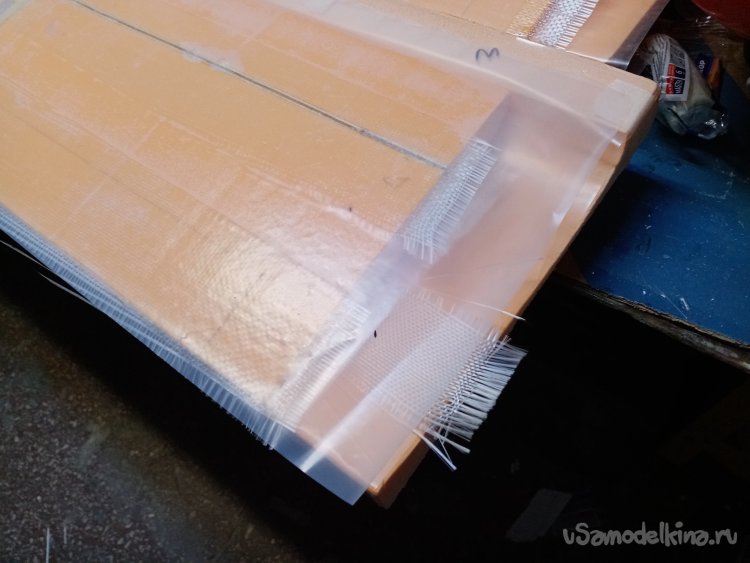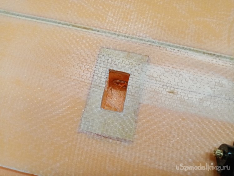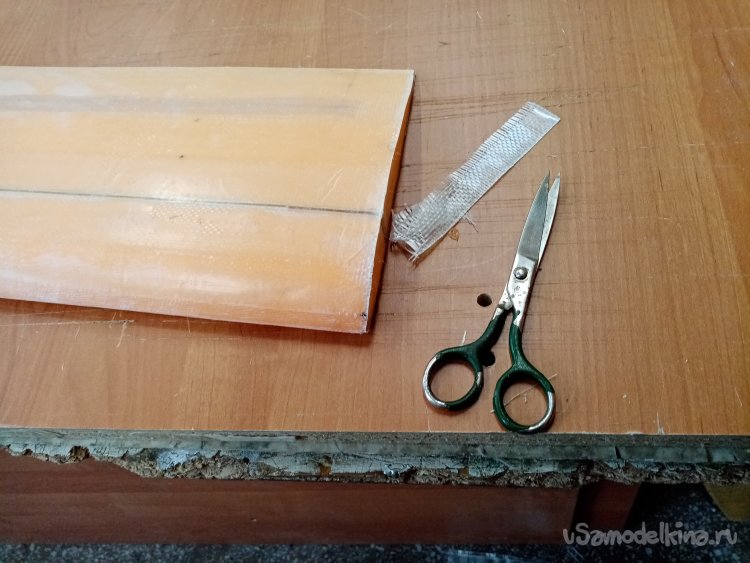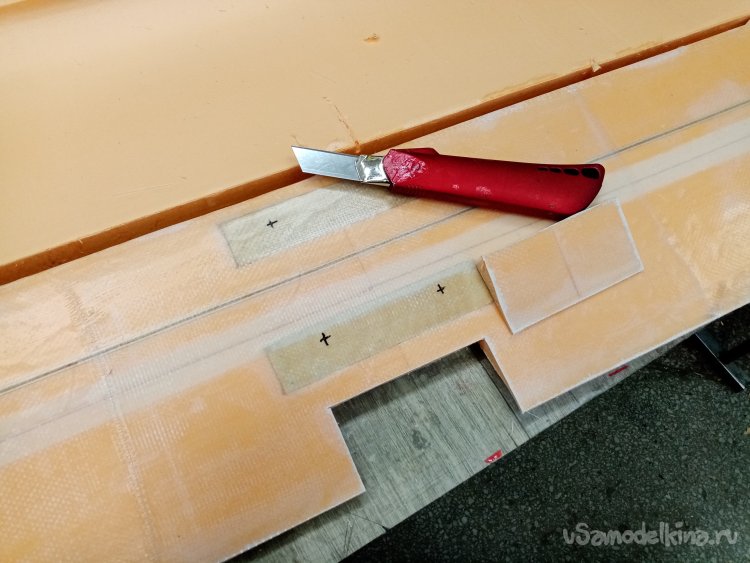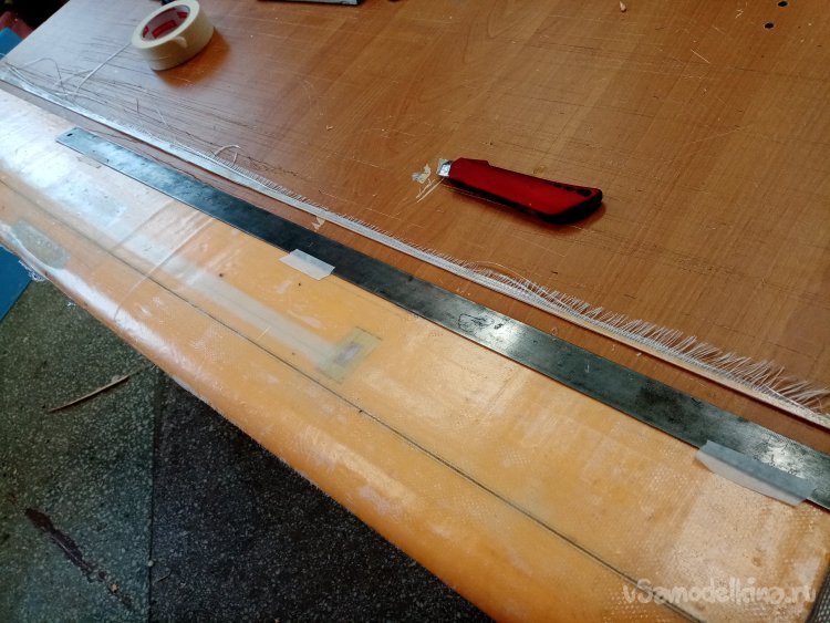 Срезаю стеклоткань по торцам крыльев.