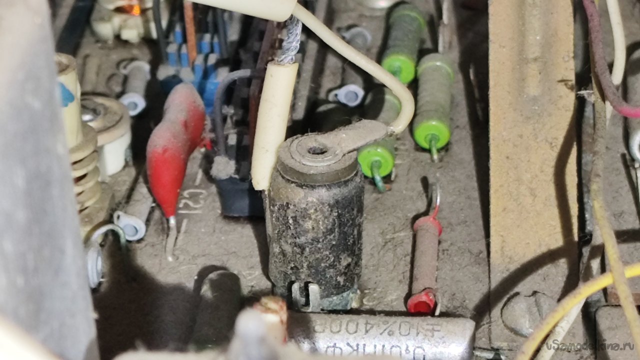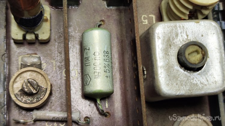 Интересный конденсатор ПМ-2. Никогда не видел у конденсаторов скрученные выводы.