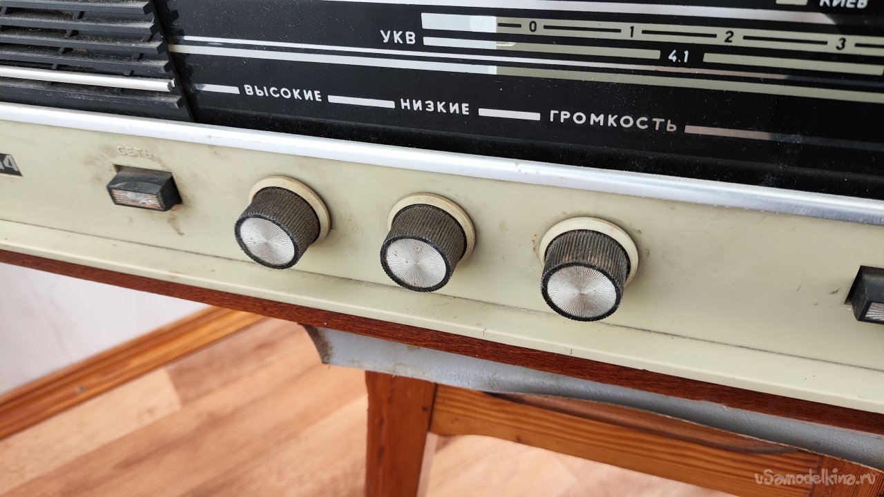 Для удобства работы хочу достать шасси радиолы из корпуса. Для начала необходимо снять три ручки регуляторов громкости и тембра.