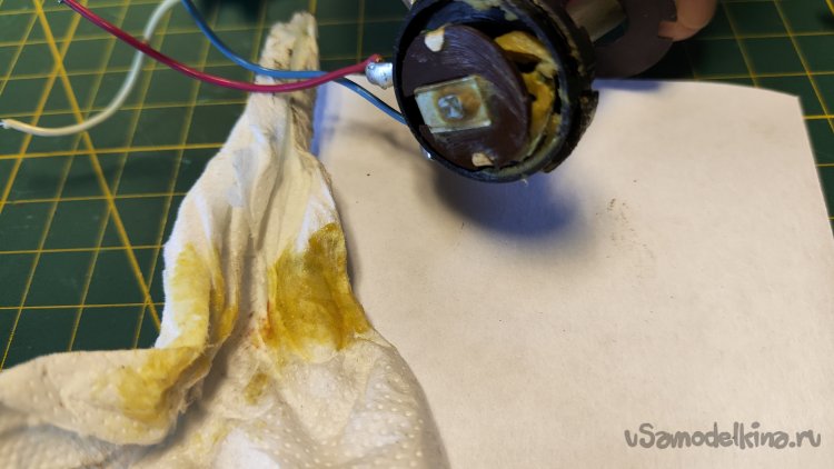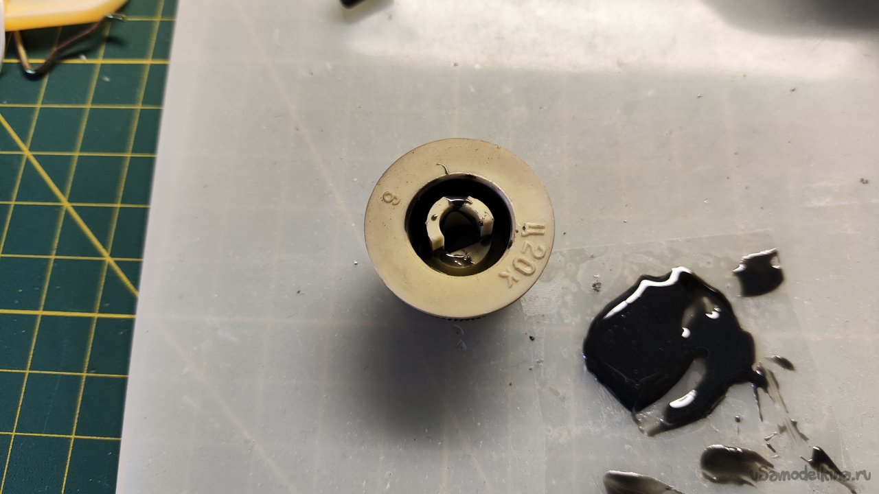 Перед углубленным изучением состояния шасси хочу починить сломанную ручку. Попробовал цианоакрилатный клей, не хочет клеить. Но мы не расстраиваемся, замешиваем эпоксидный пятиминутный клей. Излишки клея на ручке оставляю, потом внутри подпилю бормашинкой.
