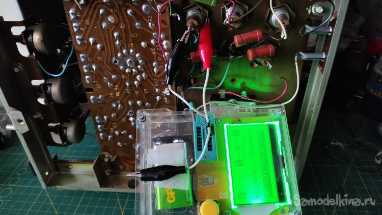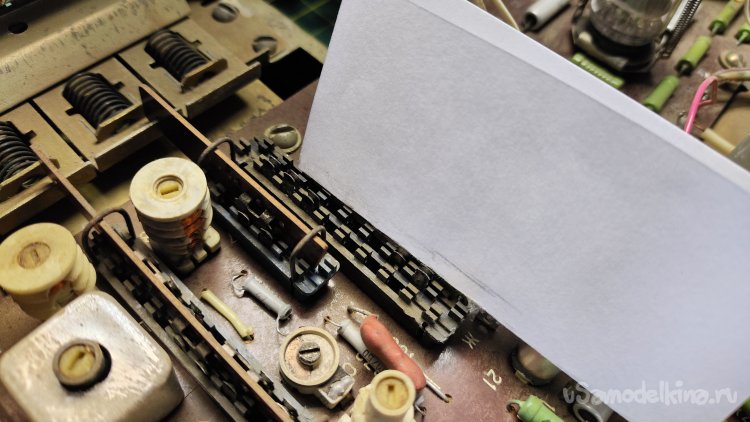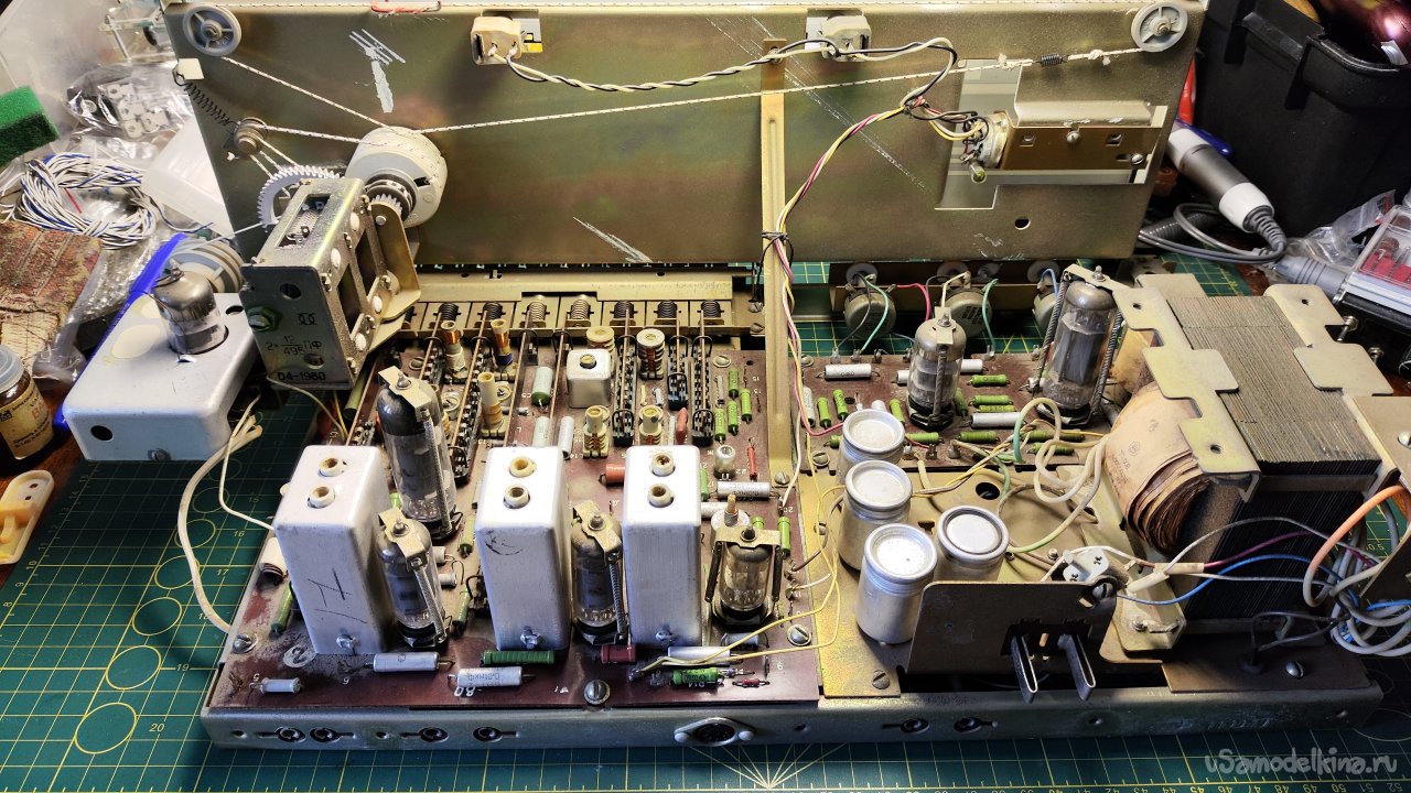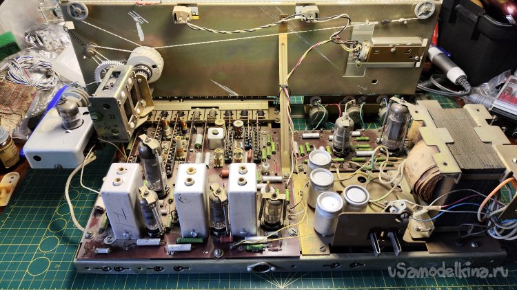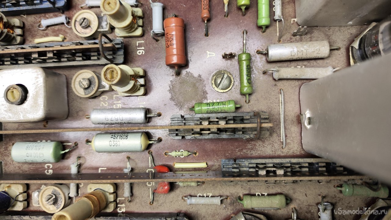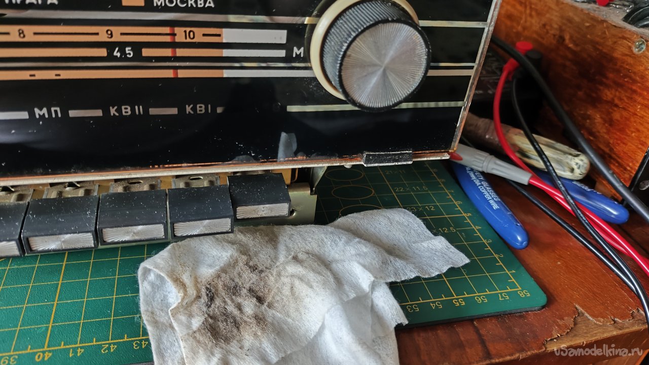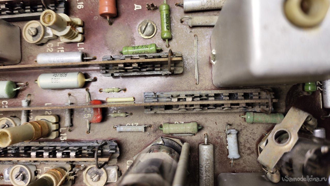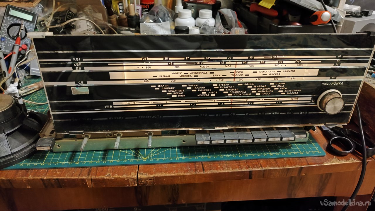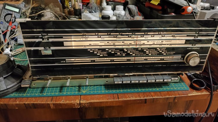 Поставил лампу в панельку. Включаю радиолу. Звук в УКВ диапазоне появился, радиостанции ловятся!