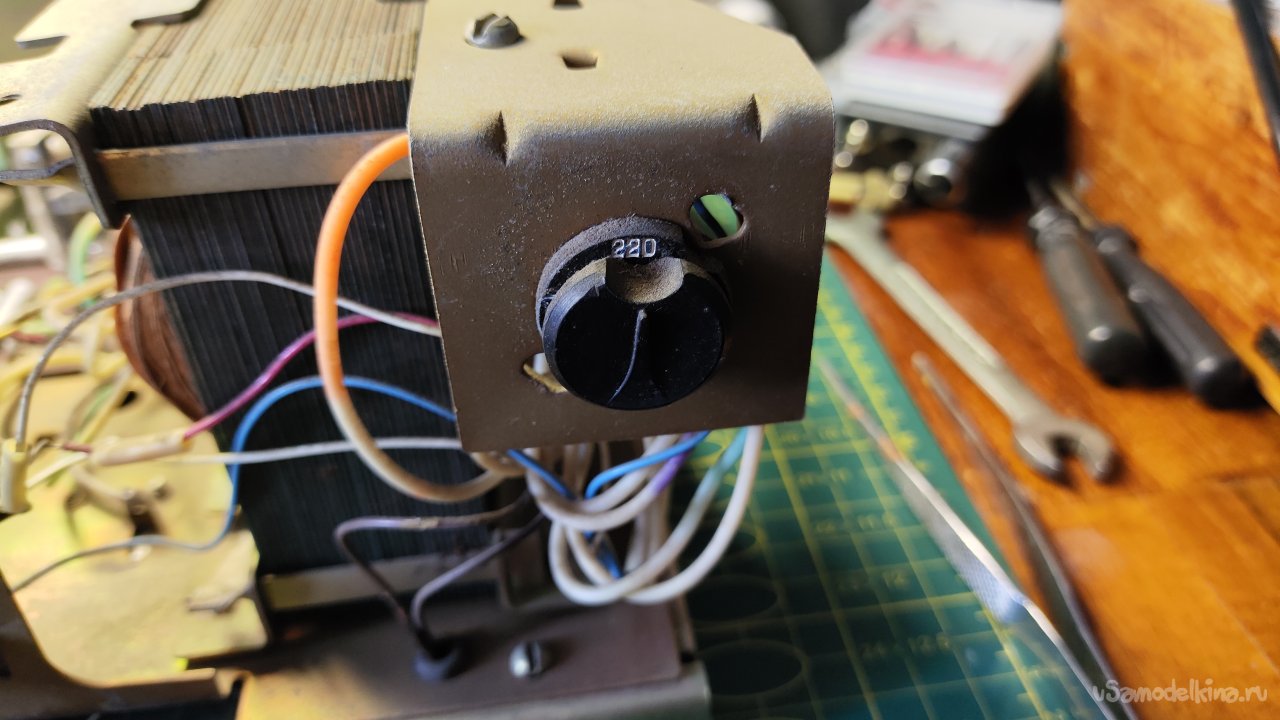 Переключатель напряжения питания. Радиола может питаться от трех напряжений 110, 127 и 220 вольт.