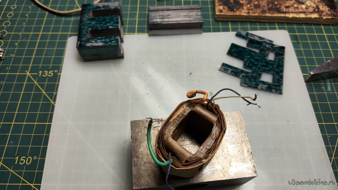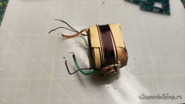 Аккуратно виток к витку наматываю обратно выходную обмотку и собираю трансформатор.