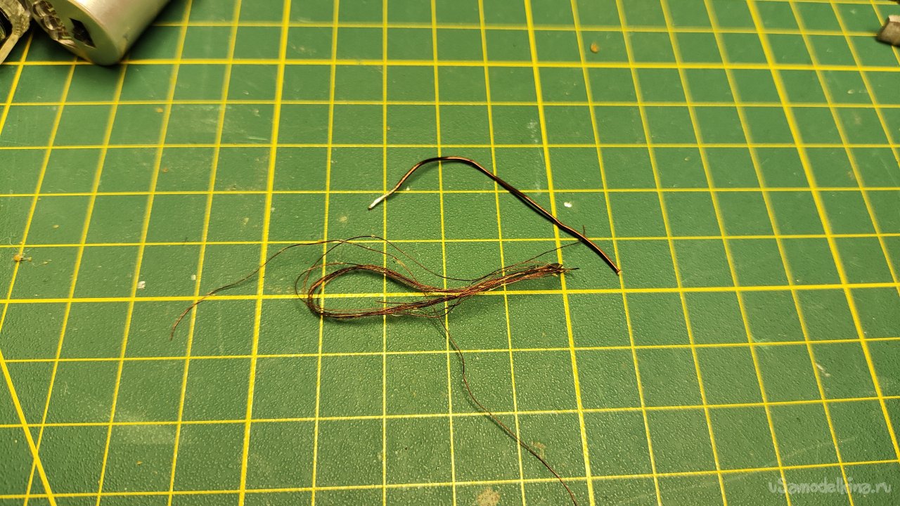 Внимательно осматриваю видимый слой обмотки и нахожу черную точку на проволоке. И это практически в самом конце обмотки! Отпаял белый провод от начала обмотки, чтобы не мешался и не оборвался. Отмотал буквально несколько витков конца обмотки и провод отпал.