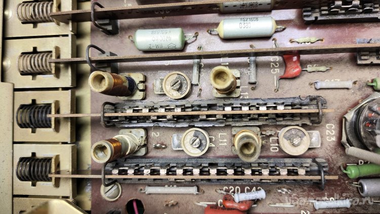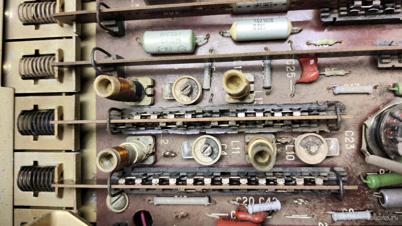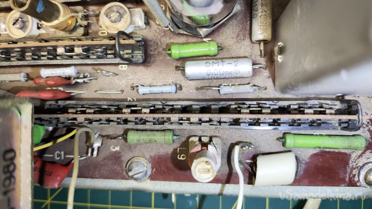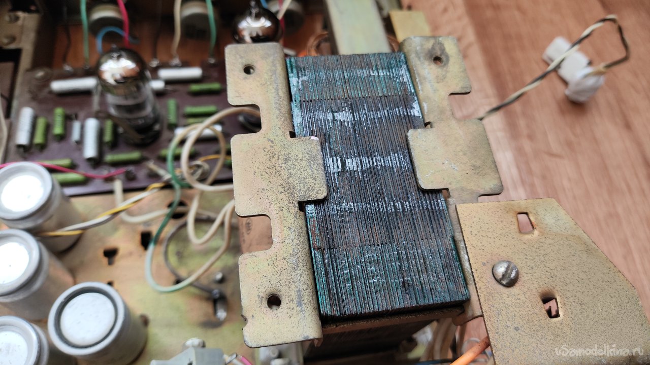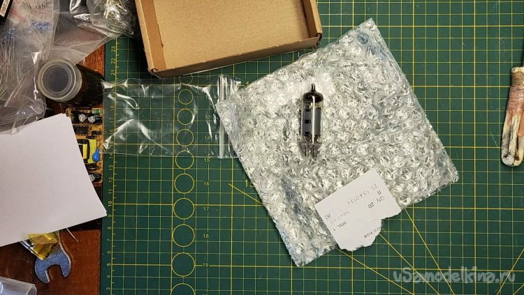 Установил трансформатор на плату. Включаю. Лампы прогрелись. Есть небольшое шипение и треск при вращении регулятора громкости. Его, как и другие регуляторы надо будет почистить. Переключаю приемник на УКВ. Там тишина. Ни одной станции не ловится. Внимательно осмотрел все лампы. Не горит накал у лампы Л2. По схеме это 6К4П. Достал лампу, накал не звониться. Не расстраиваемся, где-то в шкафу у меня были старые лампы. Были, но сейчас их нет, не нашел. Поискал где купить 6К4П. Цены мягко говоря не радуют, где 38 бел. рублей, где дороже. Но все же нашел ребят в Минске, высылают по Беларуси посылки. Лампа у них стоила 11 рублей и доставка Белпочтой около 8 рублей. Это в два раза дешевле, чем другие ближайшие предложения. Заказал лампу.