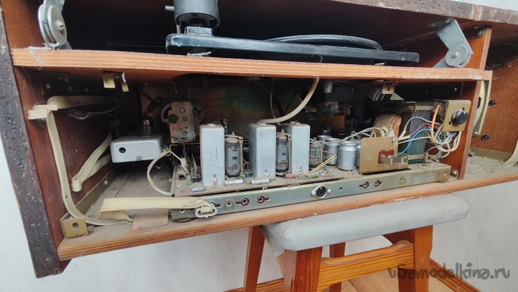 Но отпуск в феврале и хорошее настроение помогли радиоле. Для удобства работ поставил радиолу на стул.