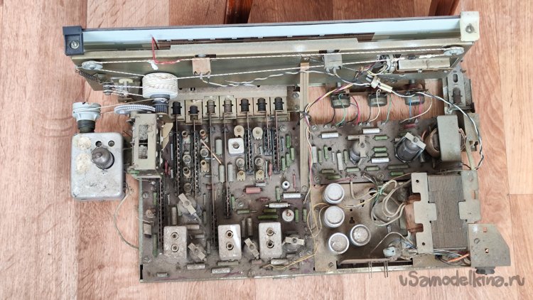 После снятия панели проигрывателя открывается «прекрасный вид». Все это перед ремонтом необходимо почистить.