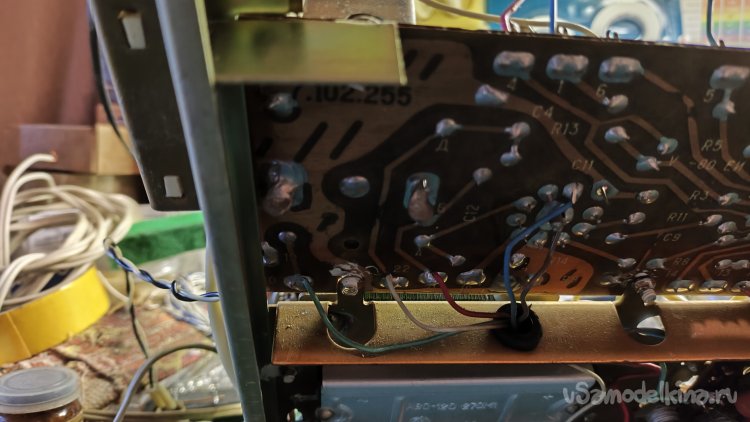 Шасси закреплено к корпусу четырьмя винтами с большими шайбами через резиновые втулки вставленные в корпус.