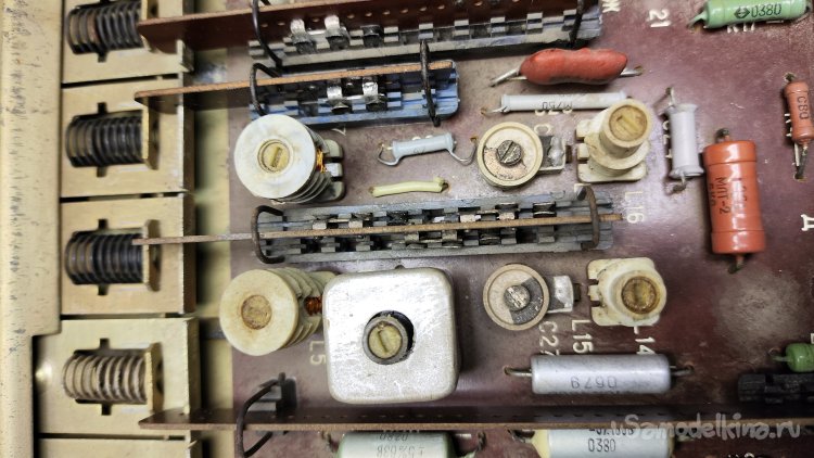 Немного напрягает уплывание частоты при прогреве радиолы. В течение часа приходится подстраивать частоту, потом держится стабильно. Под подозрение попал красный трубчатый конденсатор 45 пФ. Его ТКЕ не нормируется, как меняется его емкость от прогрева неизвестно. Нашел у себя пару разных конденсаторов на 68 пФ, серый и какой-то маленький импортный. Пробовал нагревать зажигалкой, пробор не фиксирует изменение емкости. Не поленился, снова разобрал радиолу. Поменял два конденсатора на один импортный. Снова собрал, проверил. Ничего не изменилось. Частота как уплывала при прогреве, так и уплывает. Неприятно, но не смертельно.