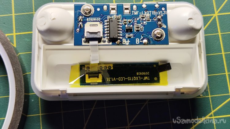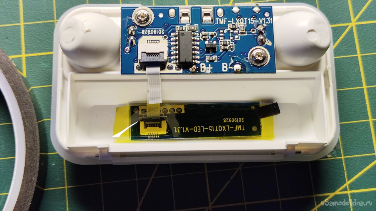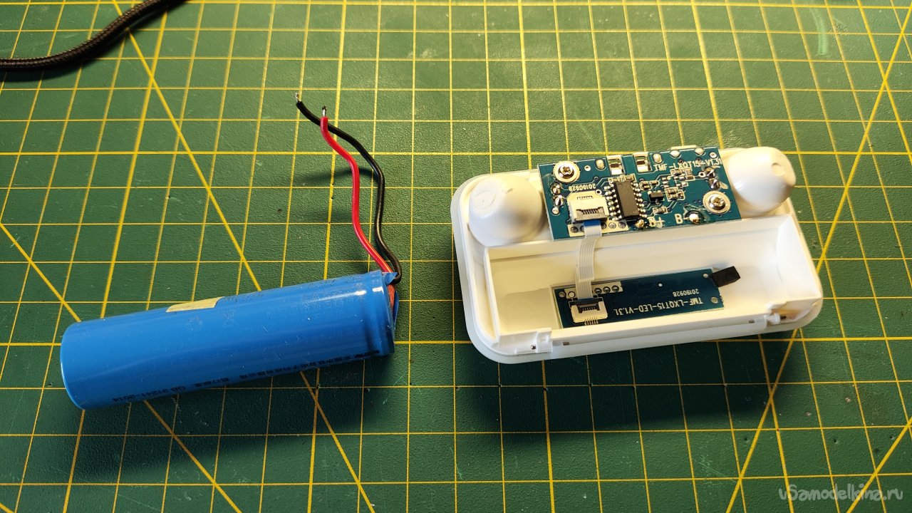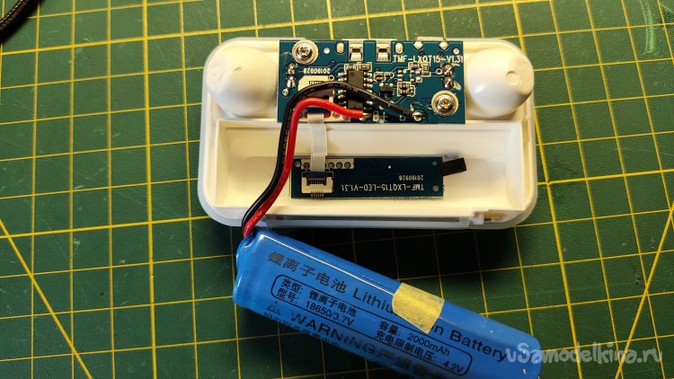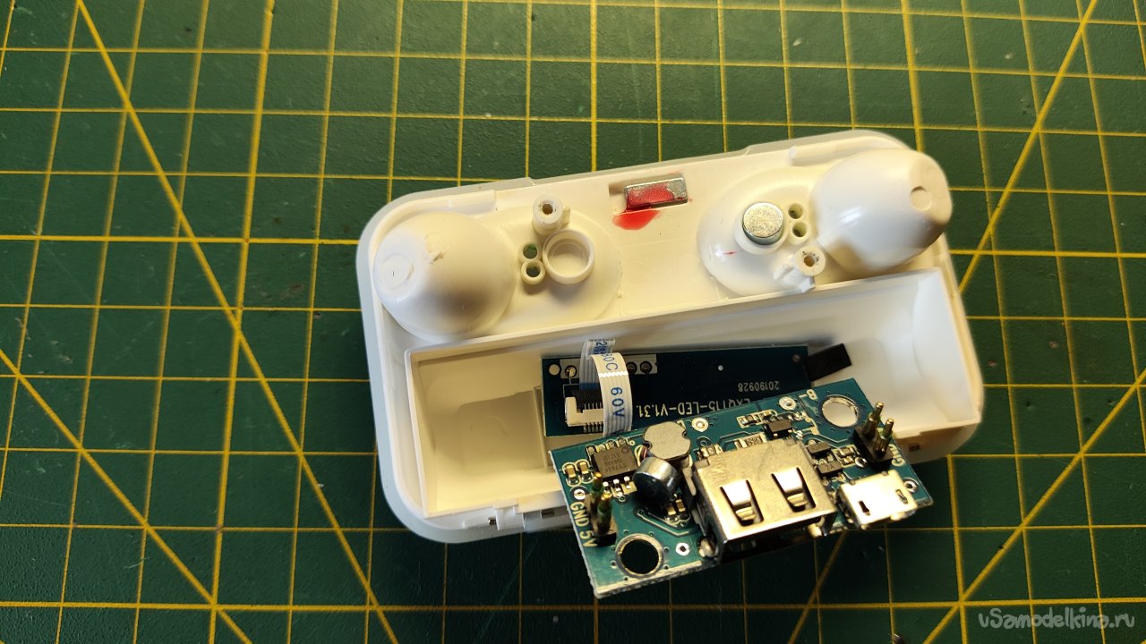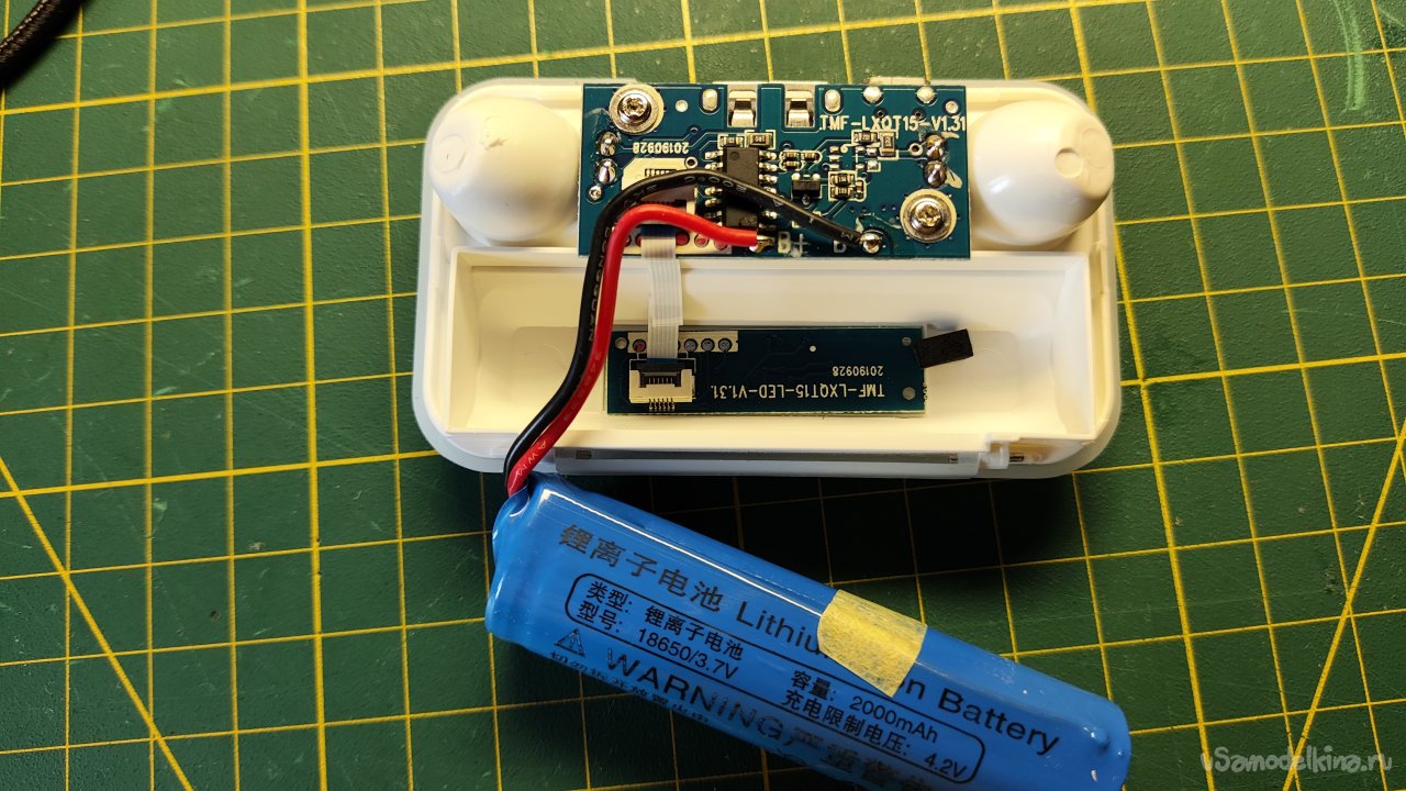 Достал аккумулятор из корпуса. Под ним плата индикации работы базы.