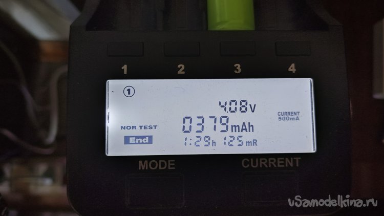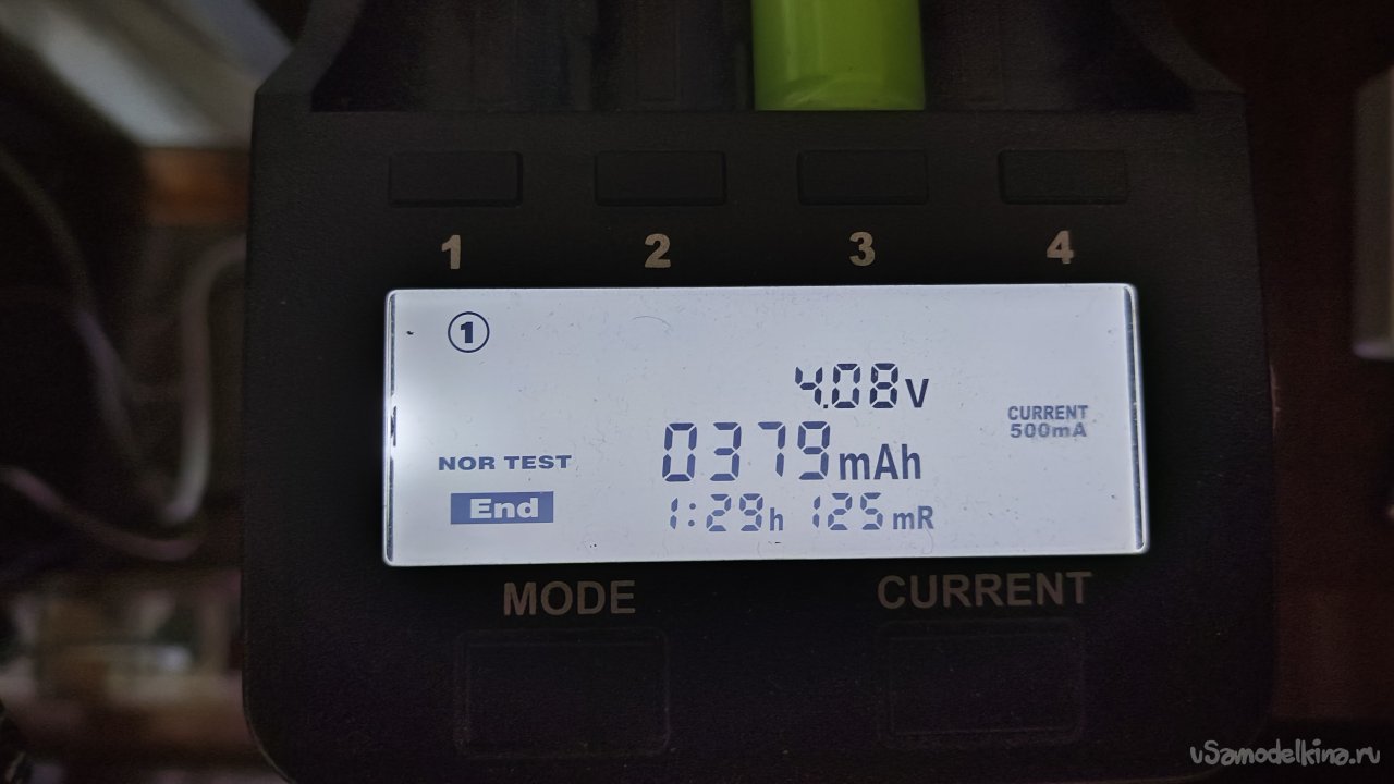 Проверка показала остаточную емкость родного аккумулятора 379 мА/ч. А при большом внутреннем сопротивлении не удивительно, что аккумулятор быстро разряжается. Напряжение проседает и схема отключает аккумулятор.